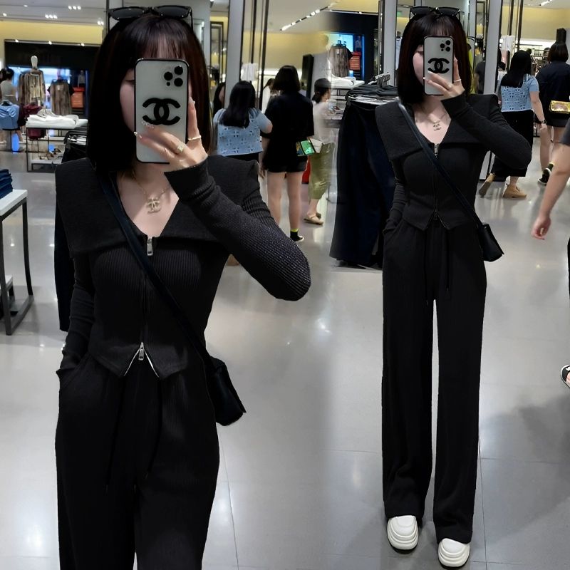 FA56547# 时尚套装女韩版气质显瘦外套休闲长裤春秋运动两件套 服裝批發女裝批發服飾貨源
