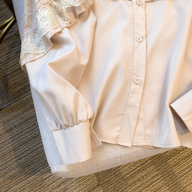 FA56554# 大货春装新款韩版蕾丝花边立领衬衣设计感小众衬衫女 服裝批發女裝批發服飾貨源