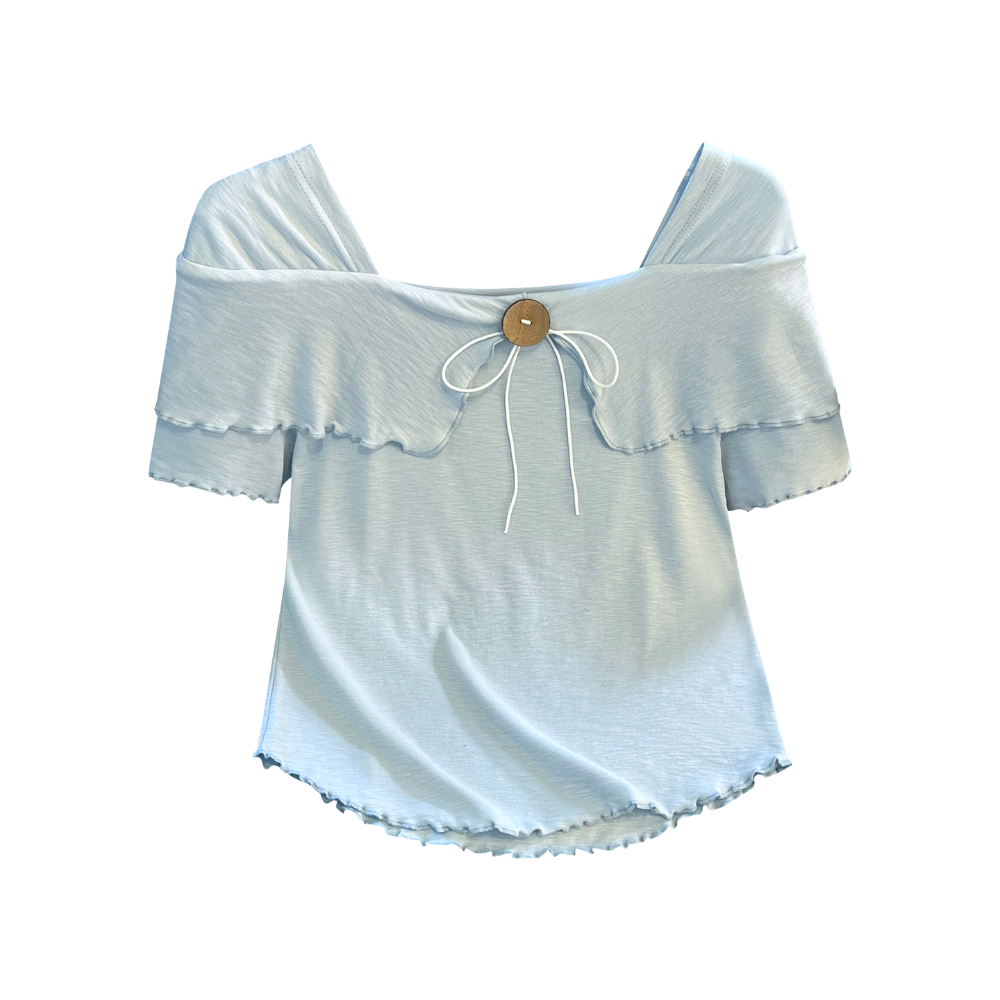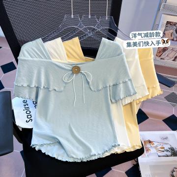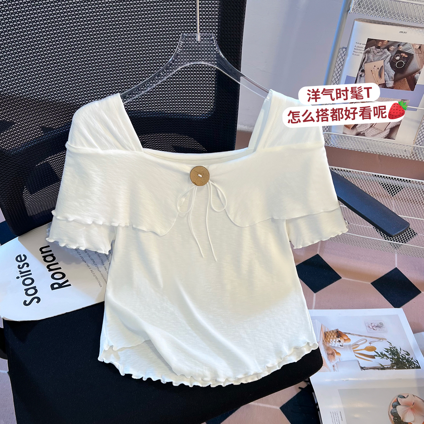 BY11289# 思洛伊新款温柔风法式方领小心机纯色上衣百搭短袖T恤 服裝批發女裝批發服飾貨源