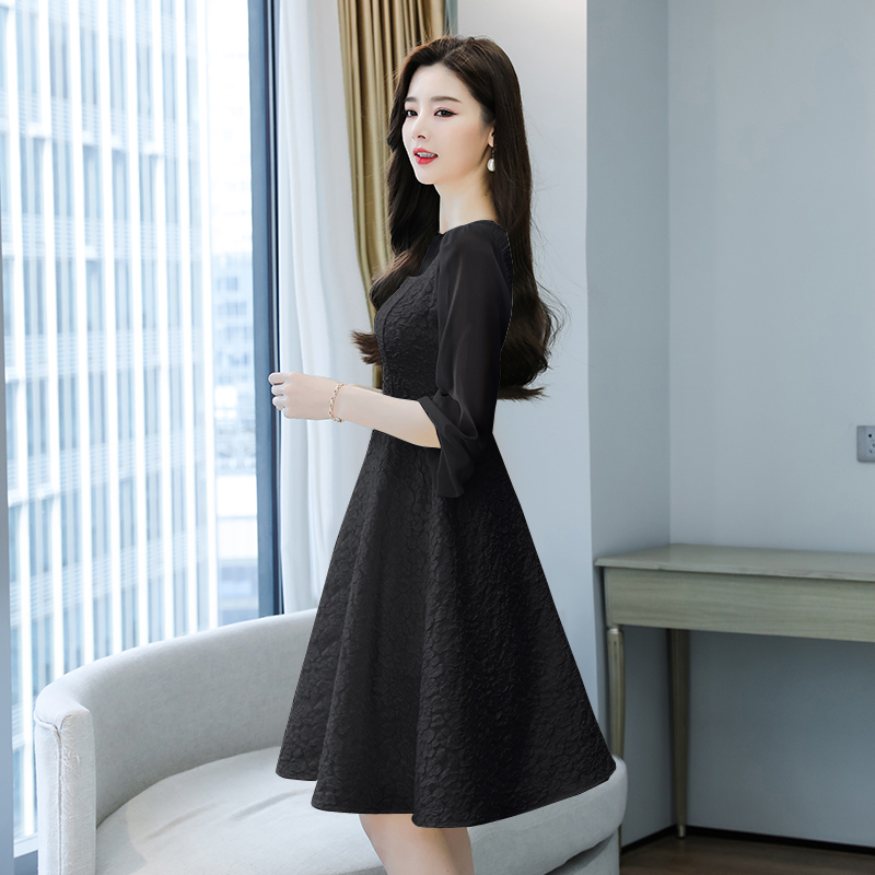 首页 > 夜店裙、长袖连衣裙 > BY11358# 春装大码法式高级感长袖连衣裙胖mm收腰遮肚显瘦气质赫本风小黑裙 服裝批發女裝批發服飾貨源