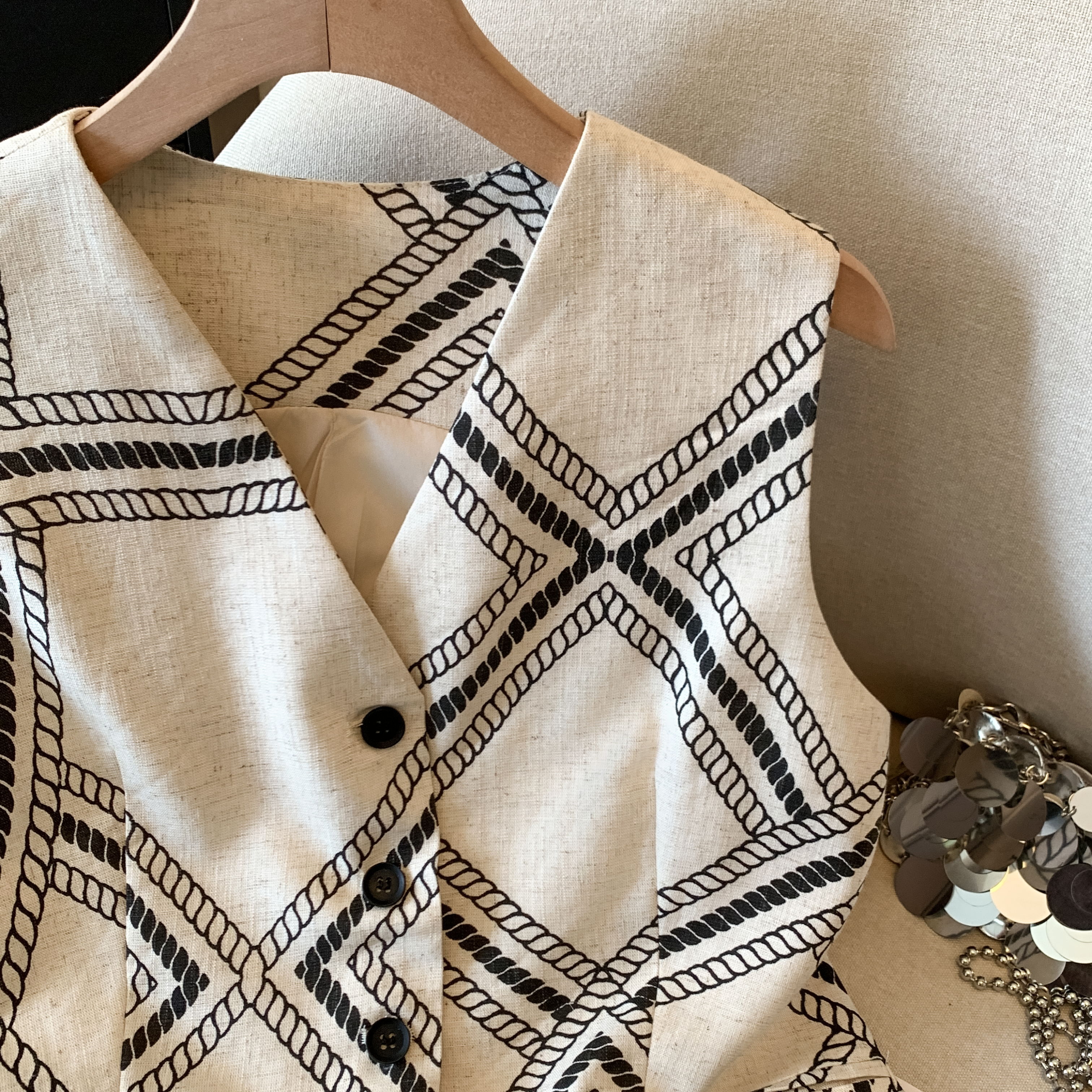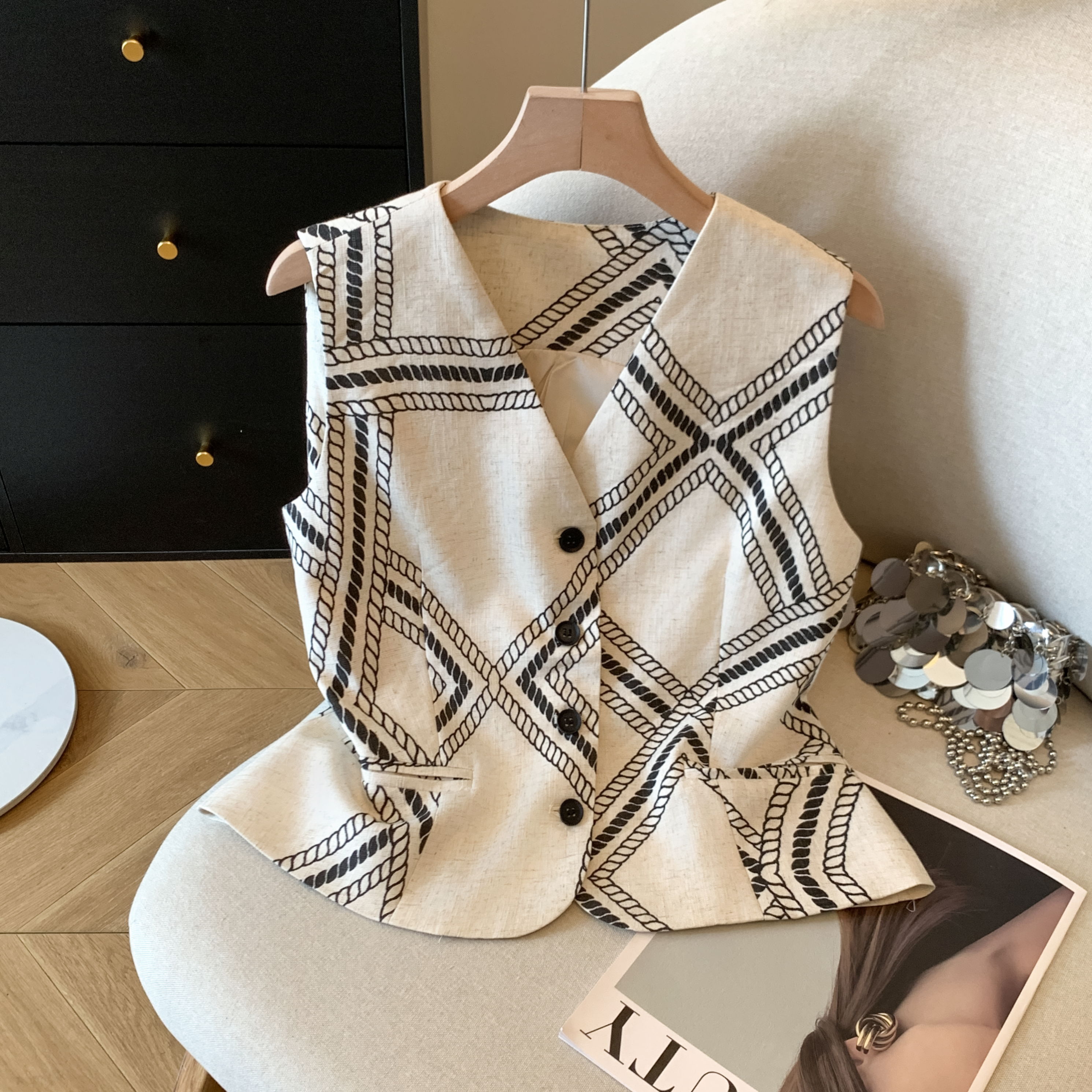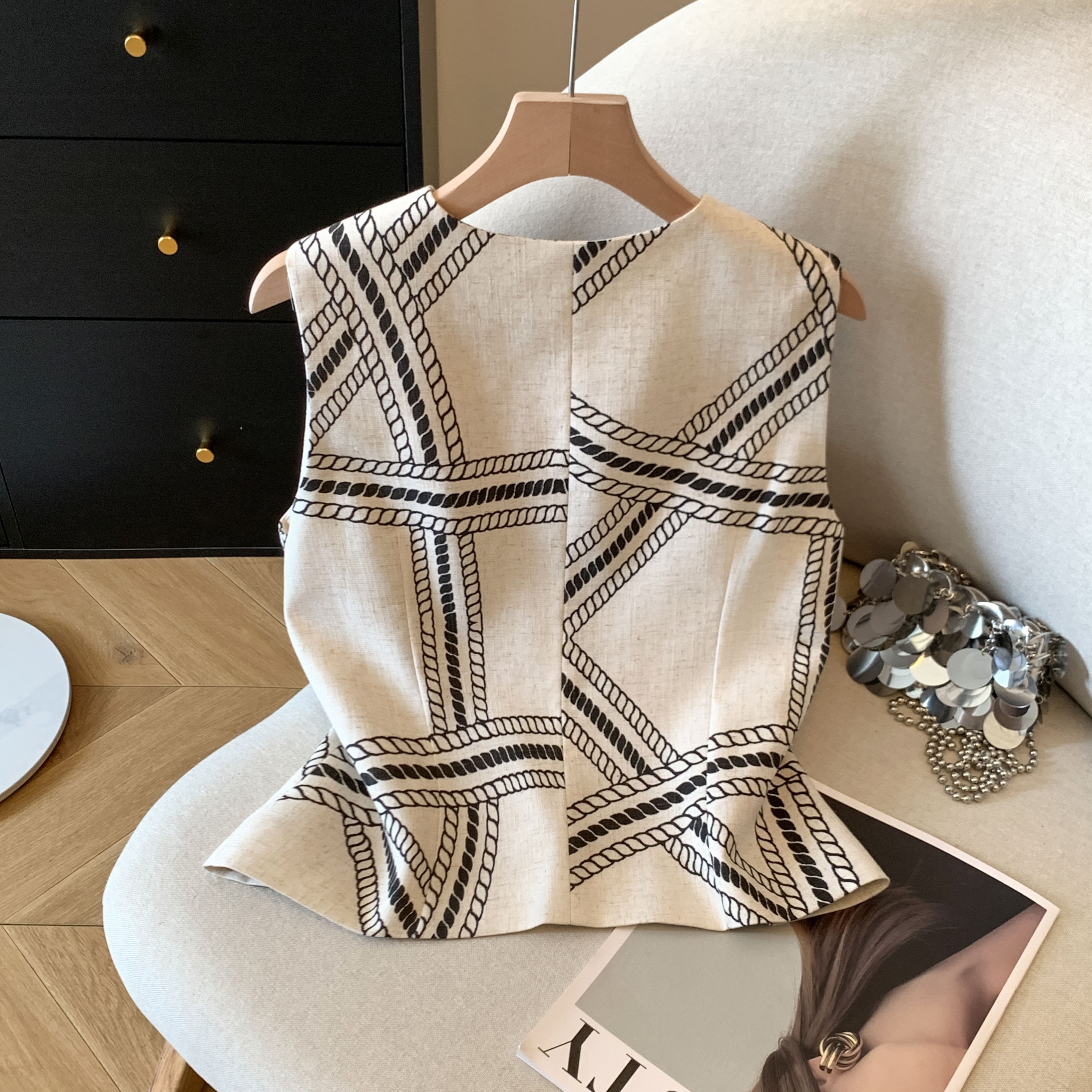 BY11428# 老钱亚麻V领马甲女夏季新款气质无袖背心上衣 服裝批發女裝批發服飾貨源
