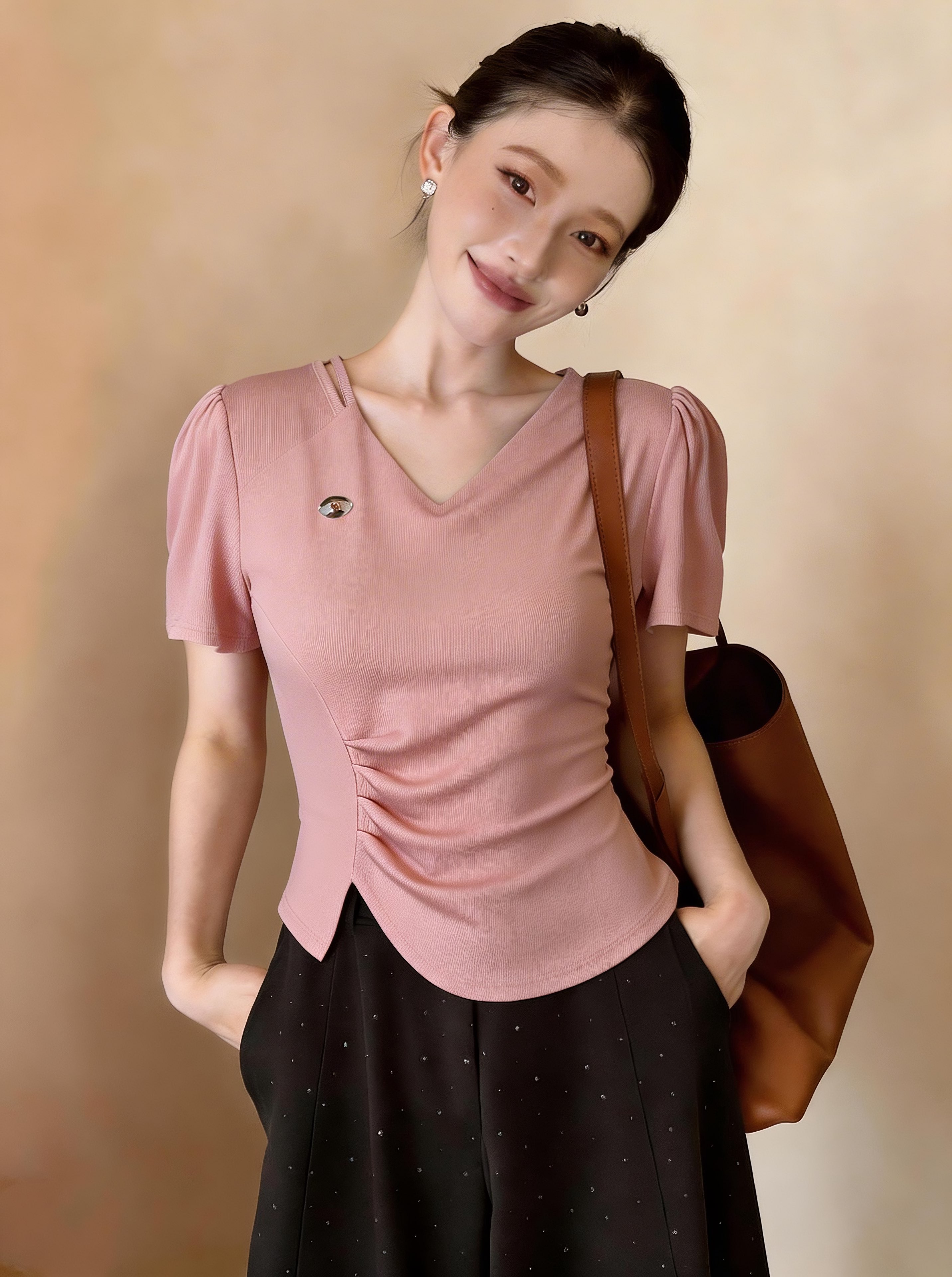 BY11565# 夏季新款时尚百搭洋气收腰显瘦设计感小众短袖T恤女上衣 服裝批發女裝批發服飾貨源