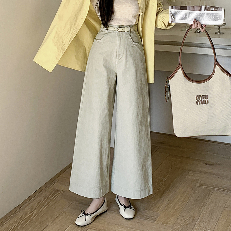 BY11969# 阔腿裤女春夏新款高腰显瘦设计感高腰长裤宽松阔腿九分休闲裤 服裝批發女裝批發服飾貨源