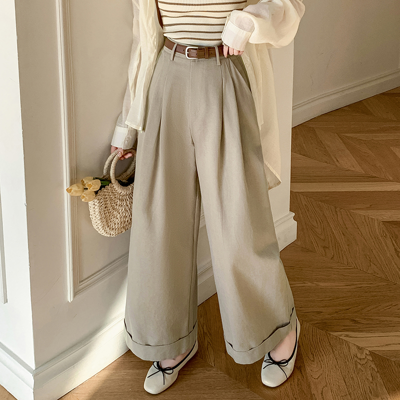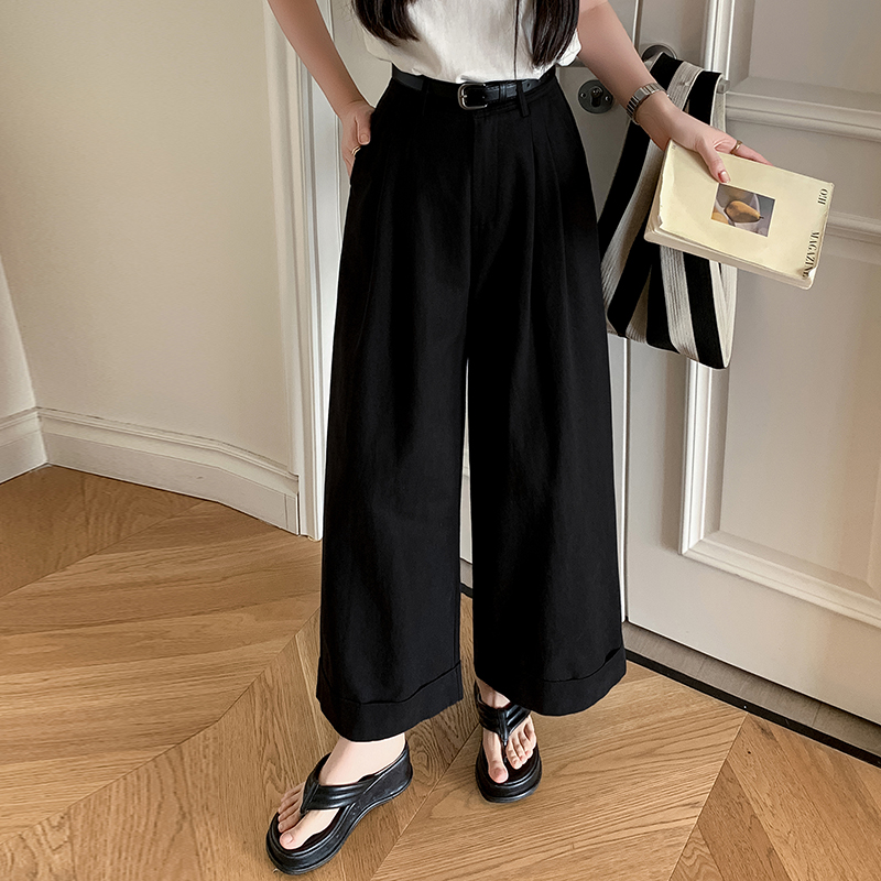 BY11970# 阔腿九分休闲裤女春夏新款天丝棉高腰显瘦设计感高腰宽松长裤 服裝批發女裝批發服飾貨源