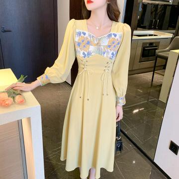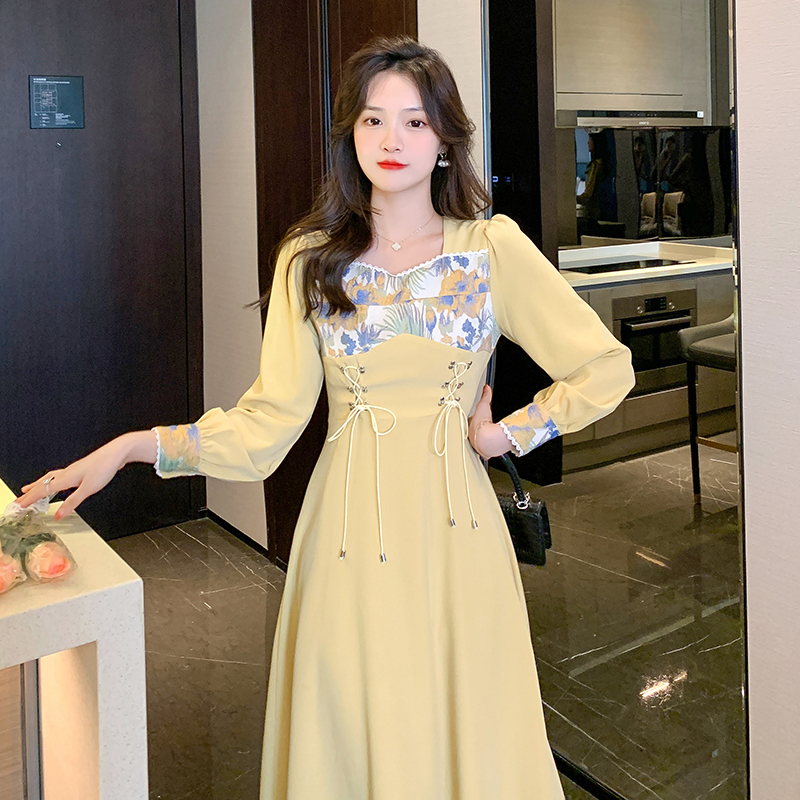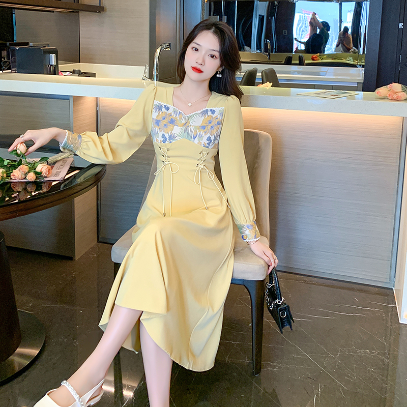 BY11981# 秋季新款复古法式温柔风气质显瘦方领连衣裙子茶歇小众设计感 服裝批發女裝批發服飾貨源