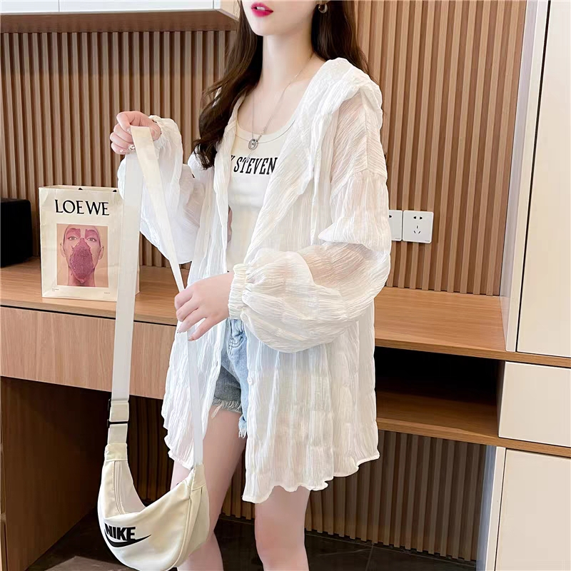BY12383# 涤纶夏季薄款连帽防晒衣女宽松外搭长袖外套上衣 服裝批發女裝批發服飾貨源