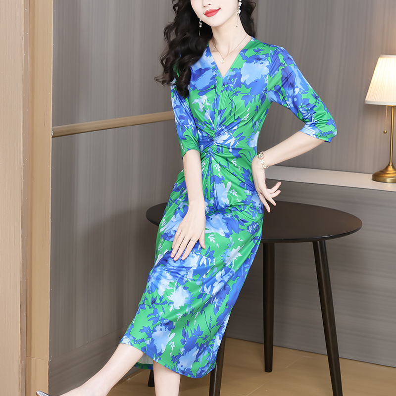 BY12427# 时尚扎染风连衣裙七分袖春夏飘逸自然风显瘦高级女 服裝批發女裝批發服飾貨源