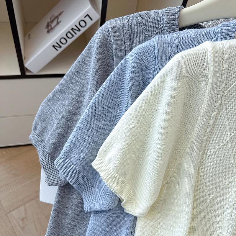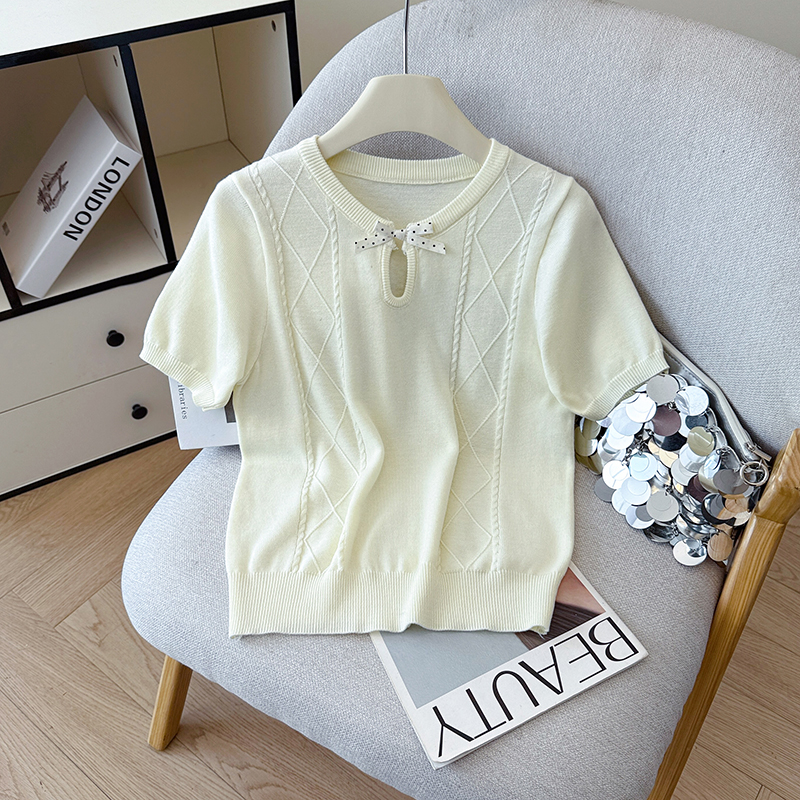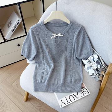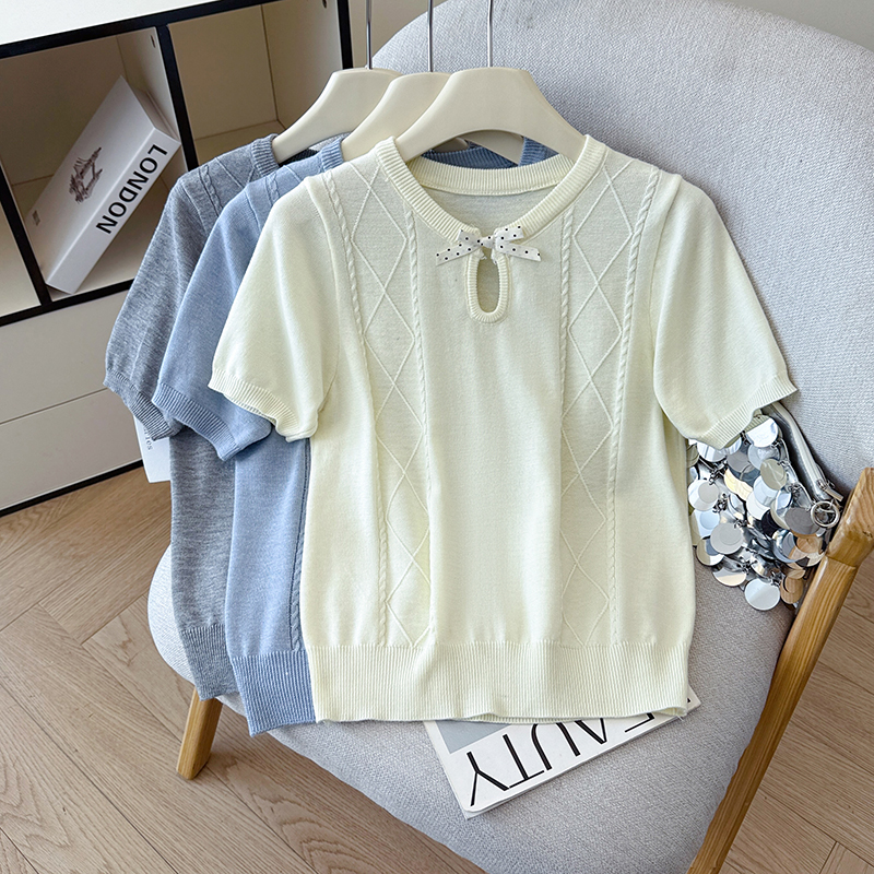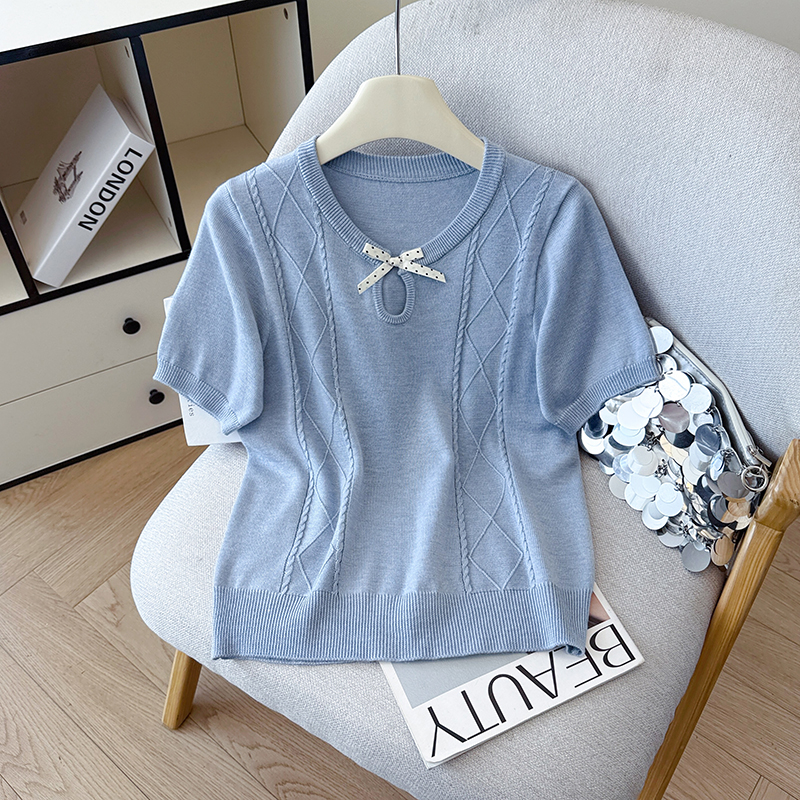 BY12788# 夏季新款蝴蝶结两休闲圆领麻花T恤天丝麻针织衫上衣女 服裝批發女裝批發服飾貨源