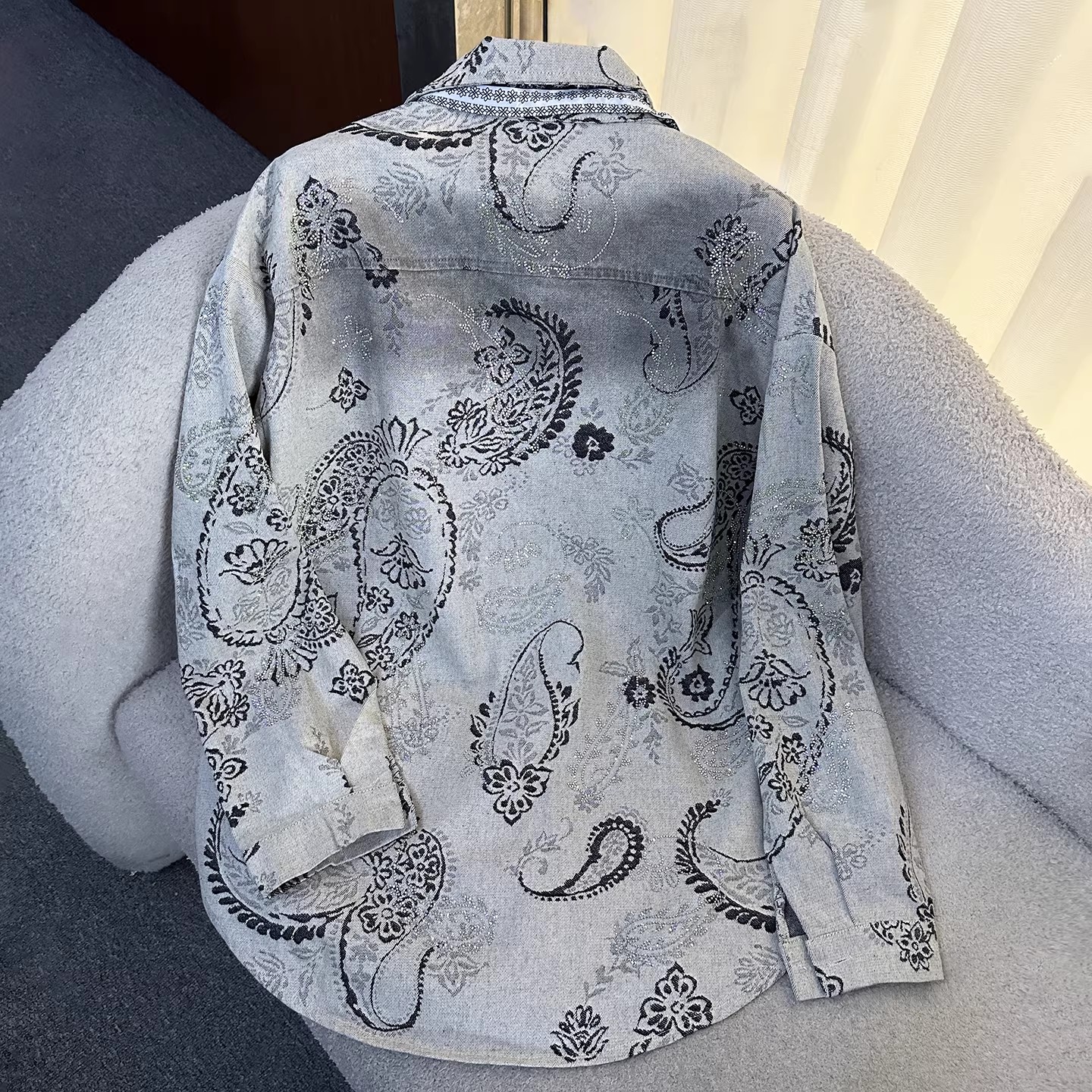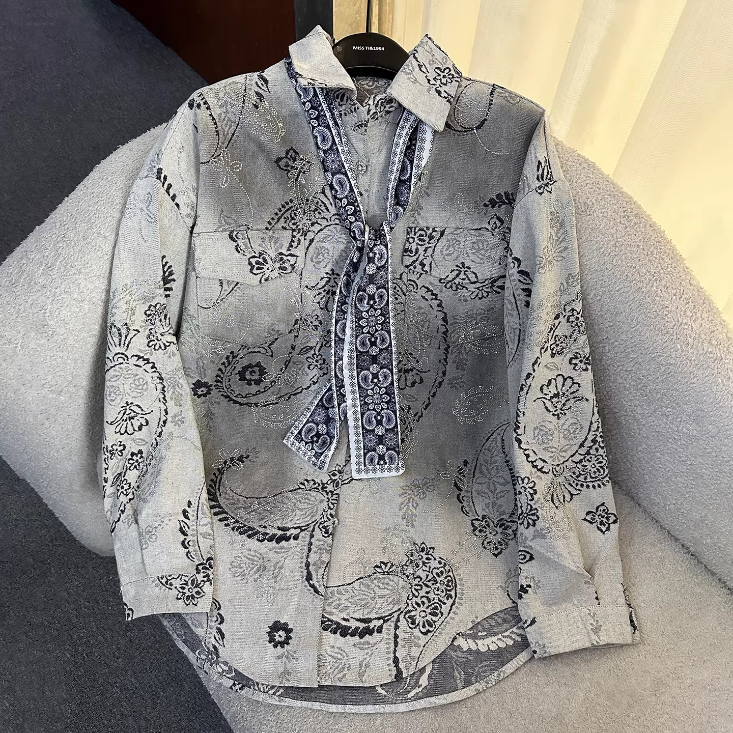 BY12845# 秋季重工新款烫钻牛仔长袖衬衫外套女宽松休闲时尚中长款上衣 服裝批發女裝批發服飾貨源