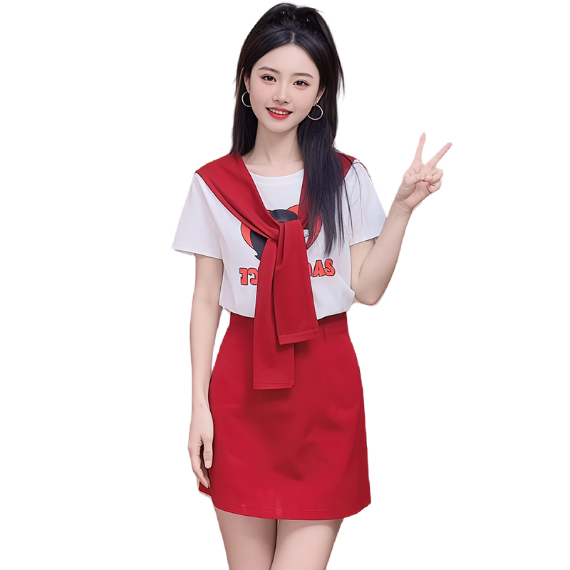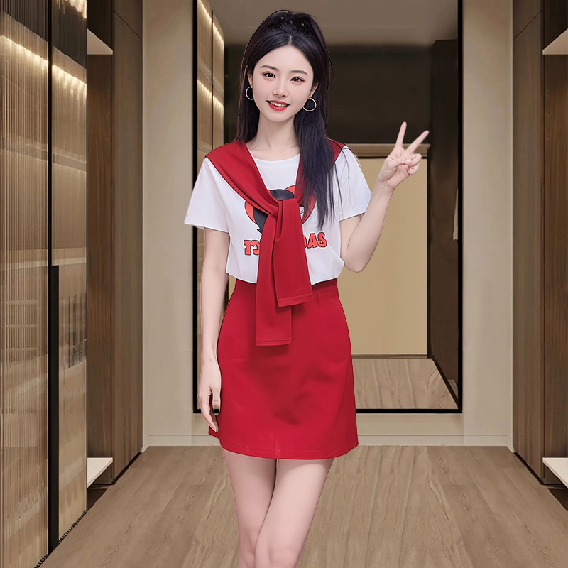 BY12847# 纯棉时尚套装女夏季新款韩版印花短袖t恤半身裙两件套 服裝批發女裝批發服飾貨源