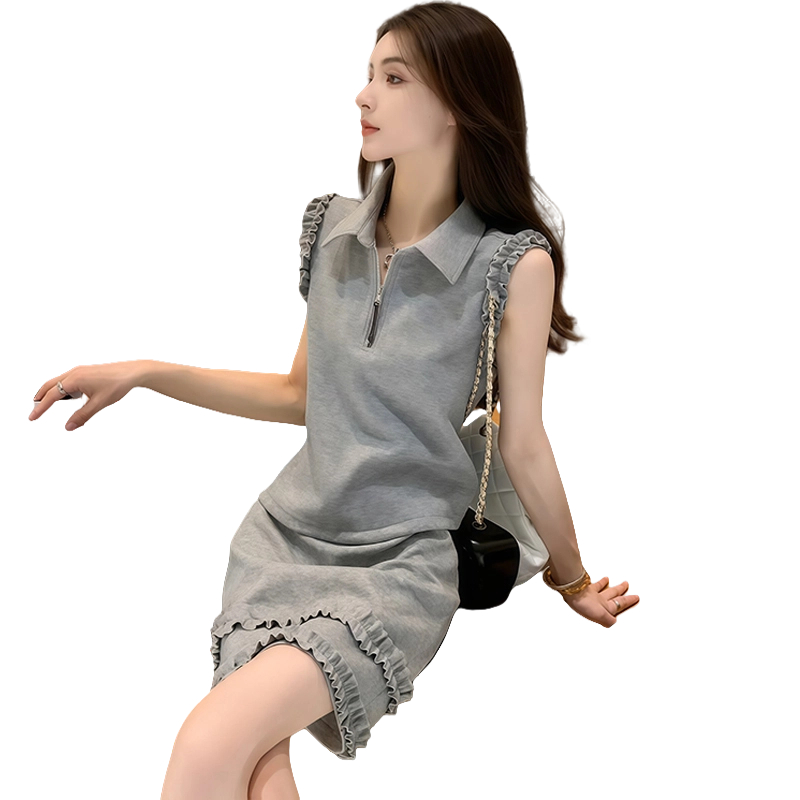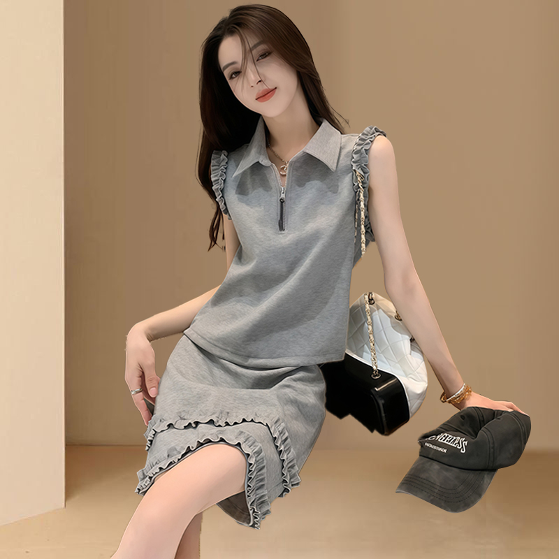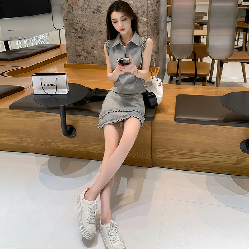 BY12878# 高含棉法式高级感套装女士夏季新款无袖上衣短裙两件套 服裝批發女裝批發服飾貨源
