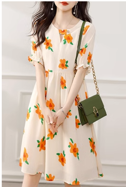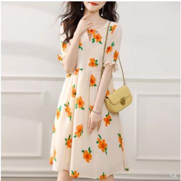 BY18119# 甜美温柔花朵印花连衣裙夏季新款通勤气质花边袖裙子 服裝批發女裝批發服飾貨源