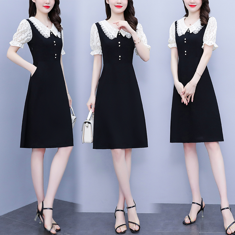 首页 > 短袖连衣裙、夜店装 > BY18151# 名媛范刺绣领口夏季新款大码女装高贵气质显瘦蕾丝拼接连衣裙 服裝批發女裝批發服飾貨源