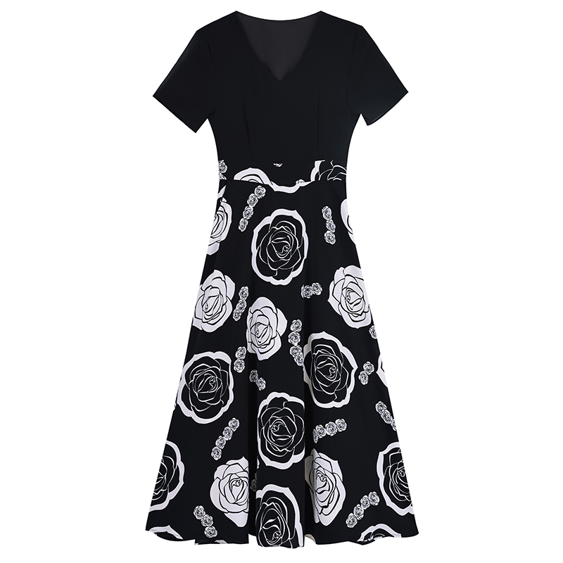 首页 > 短袖连衣裙、夜店装 > BY18156# 新款大码时尚拼接印花连衣裙女夏收腰遮肚子显瘦气质长裙 服裝批發女裝批發服飾貨源