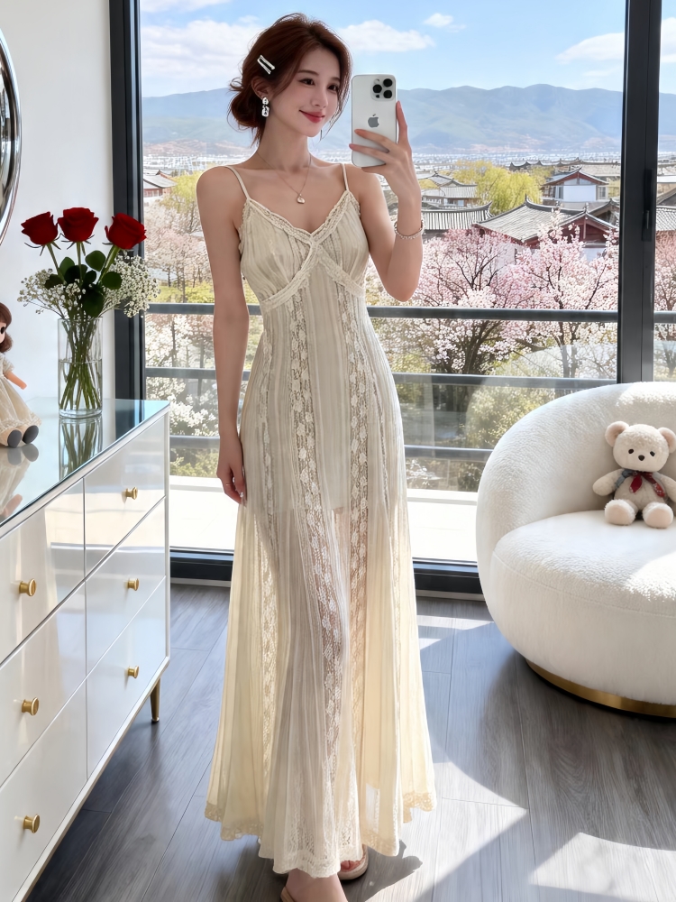 BY18341# 夏日绝美漂亮连衣裙女法式度假修身吊带裙夏季气质收腰长裙沙滩裙 服裝批發女裝批發服飾貨源