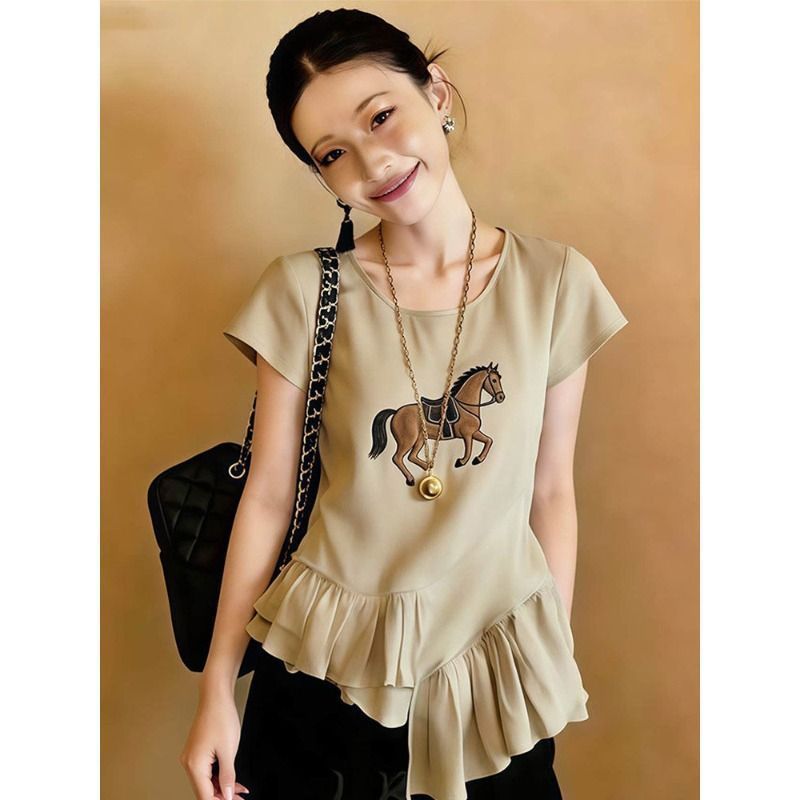BY18361# 夏季新款轻奢百搭小众欧货高端定制简约卡其色大码上衣女衬衣 服裝批發女裝批發服飾貨源