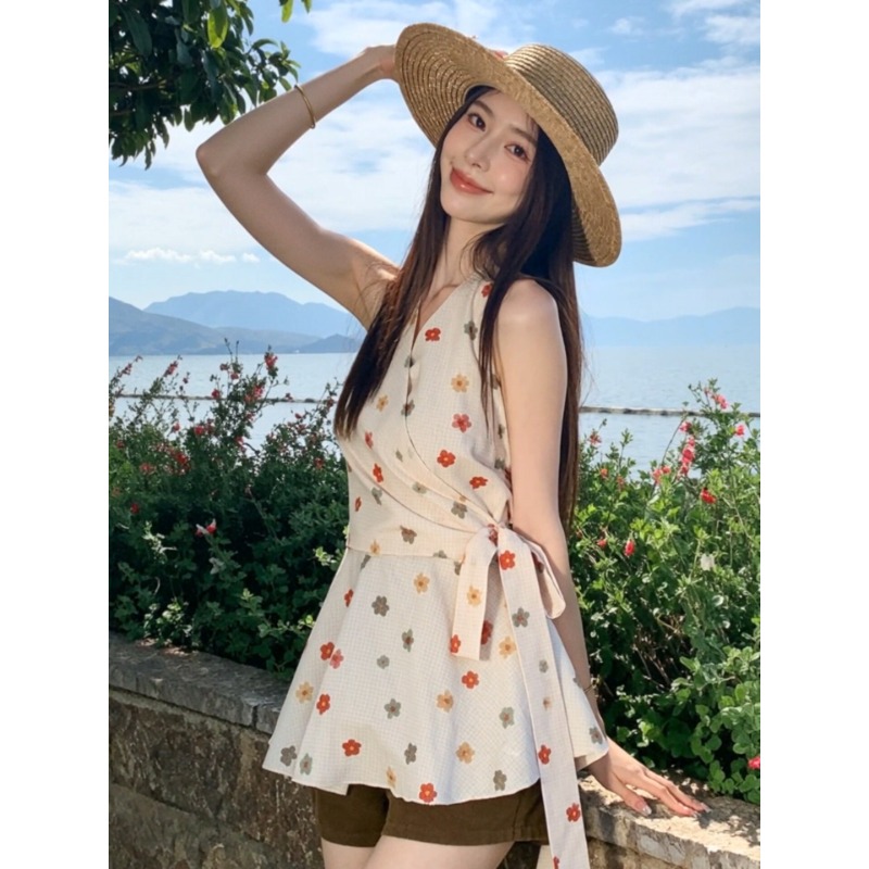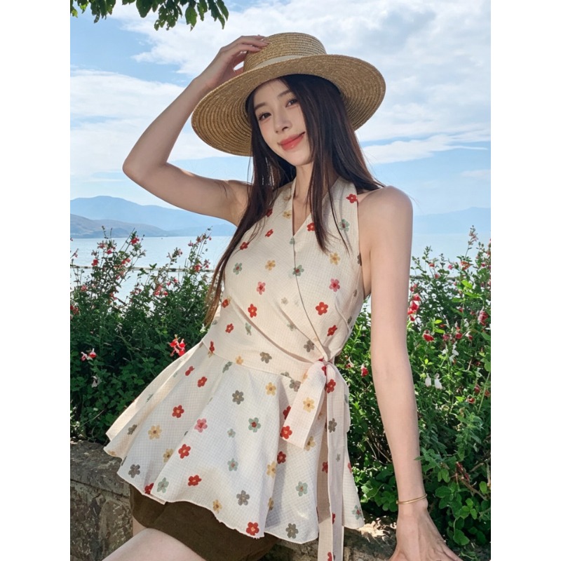 BY18394# 法式小清新田园风碎花挂脖上衣女夏季新款外穿小衫设计感小众 服裝批發女裝批發服飾貨源