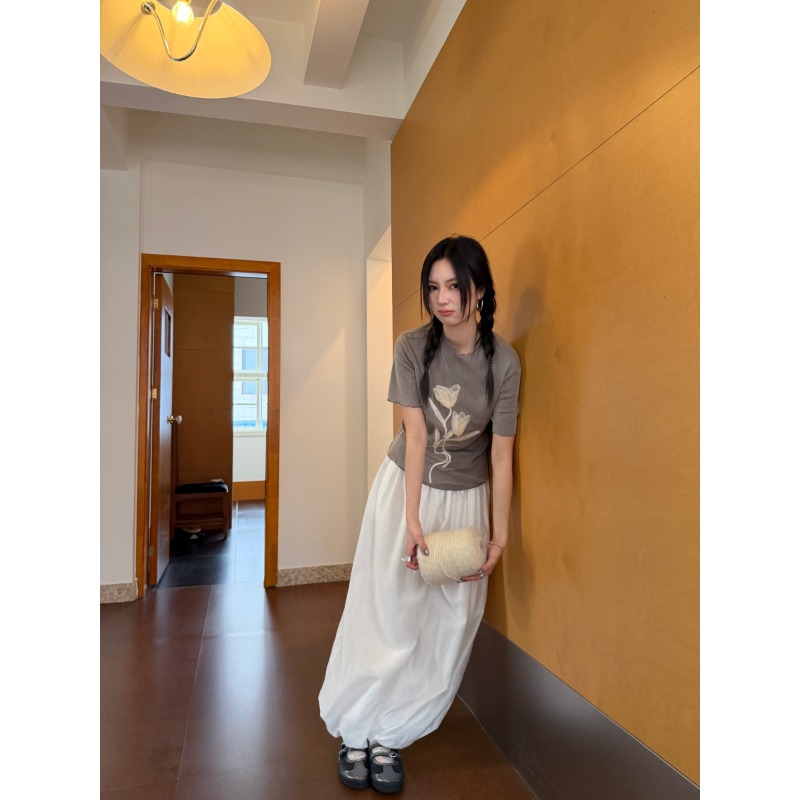 BY18395# 莫奈立体郁金香双层针织网纱叠透长袖短袖正肩T 服裝批發女裝批發服飾貨源