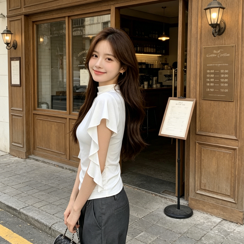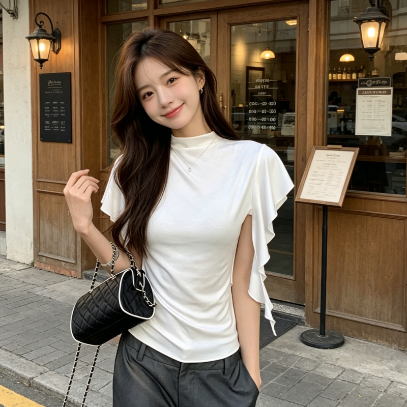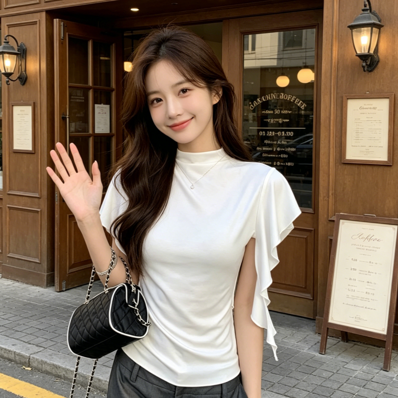 BY18441# 短袖t恤女新款夏穿搭半高领设计感小众修身白色上衣 服裝批發女裝批發服飾貨源
