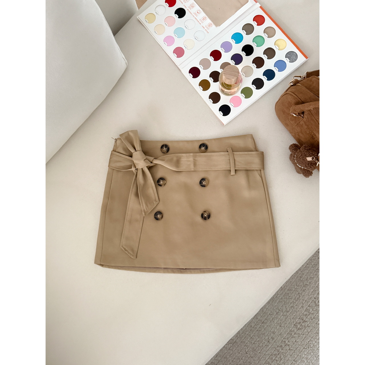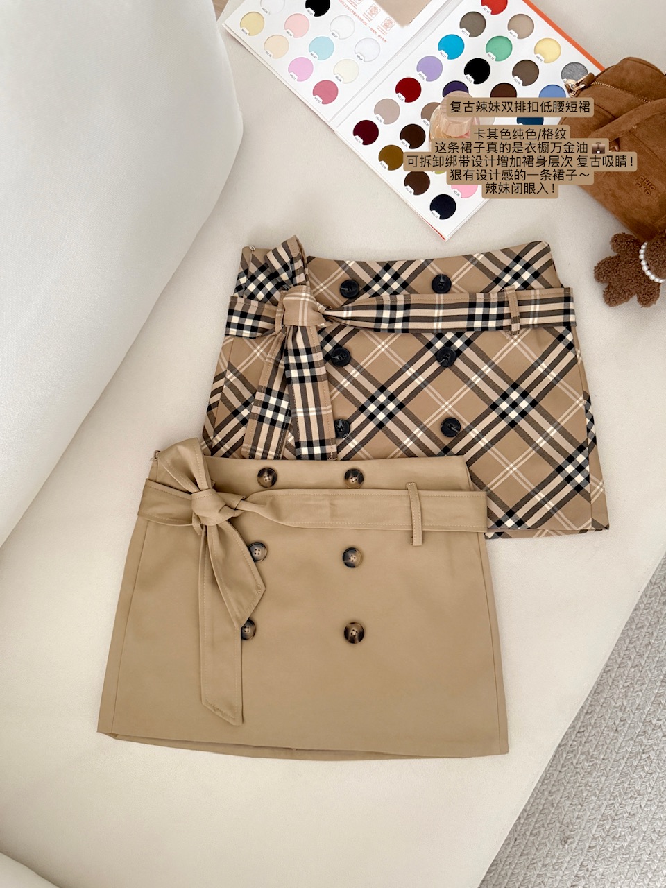 BY18669# 卡其色低腰半身裙女辣妹设计感防走光a字包臀短裙子 服裝批發女裝批發服飾貨源