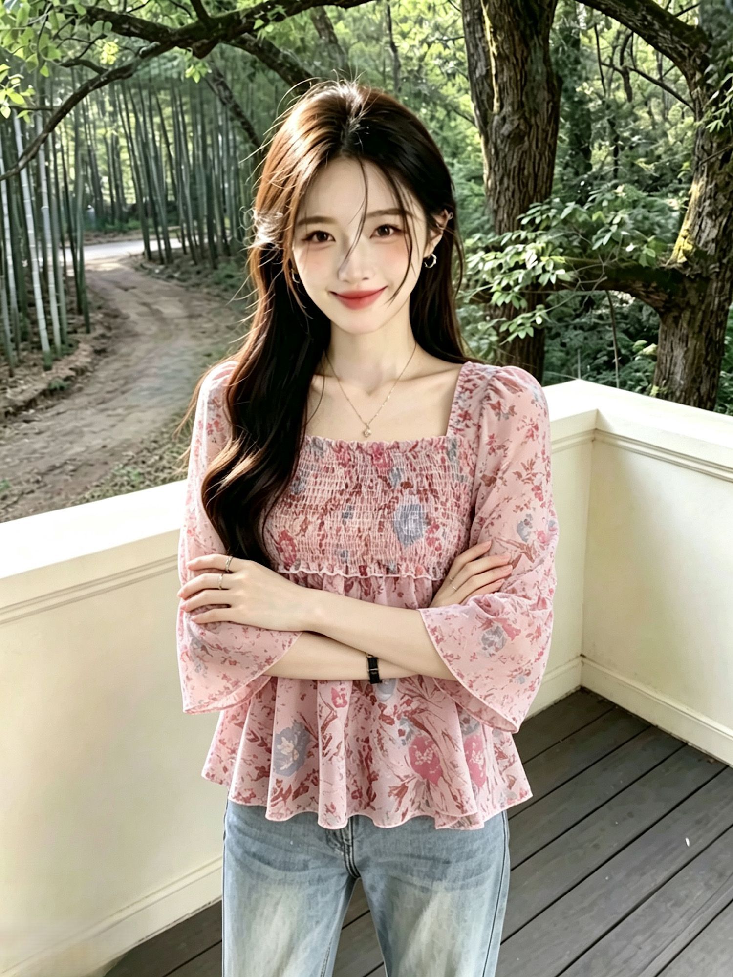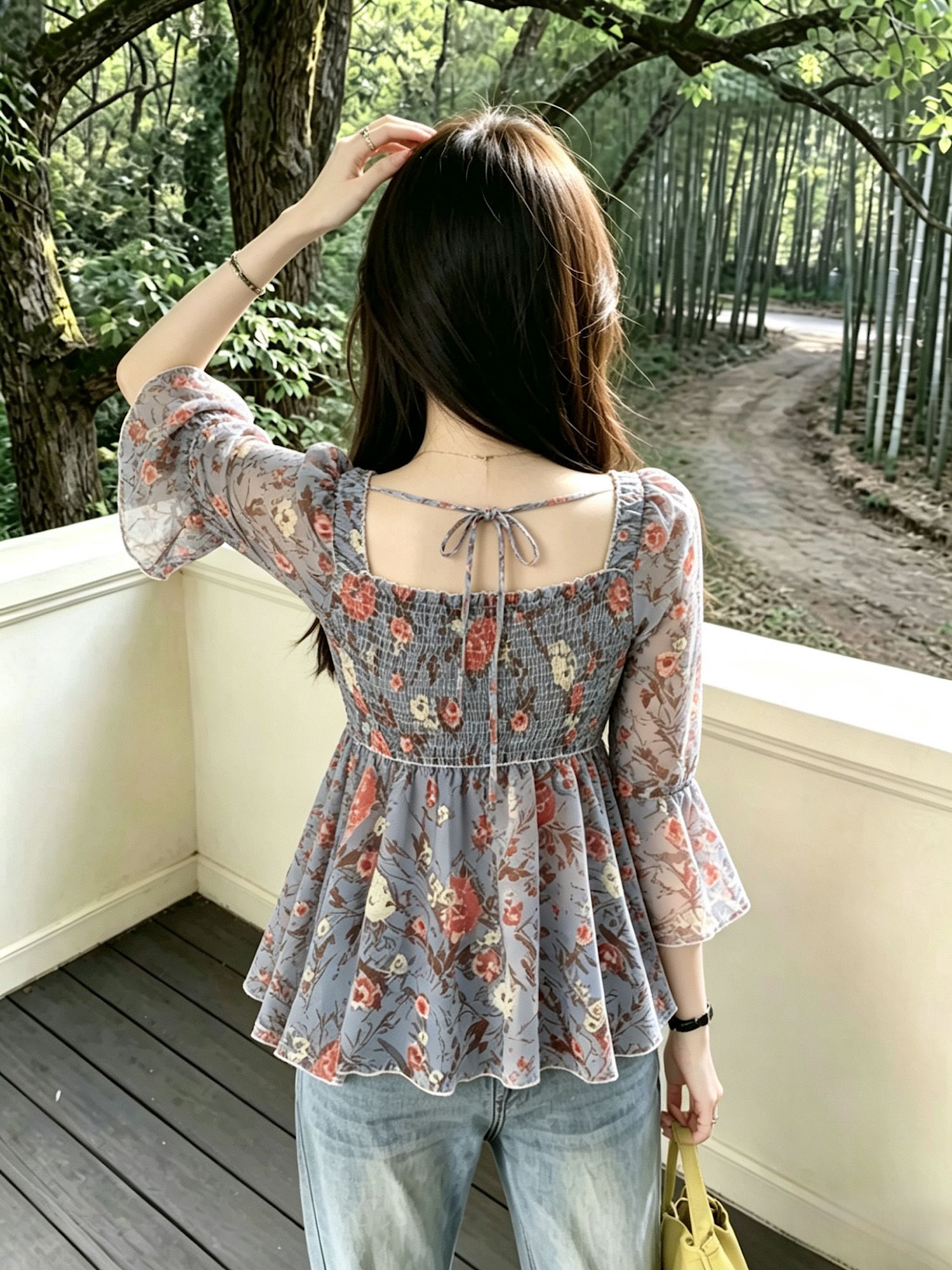 BY19071# 夏季新款喇叭袖碎花上衣修身显瘦减龄遮肚子小衫女潮 服裝批發女裝批發服飾貨源