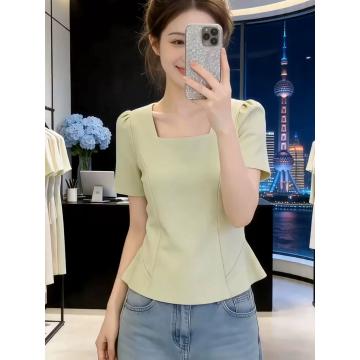 BY19101# 法式方领短袖衬衫女夏季新款通勤风收腰显瘦气质穿搭 服裝批發女裝批發服飾貨源