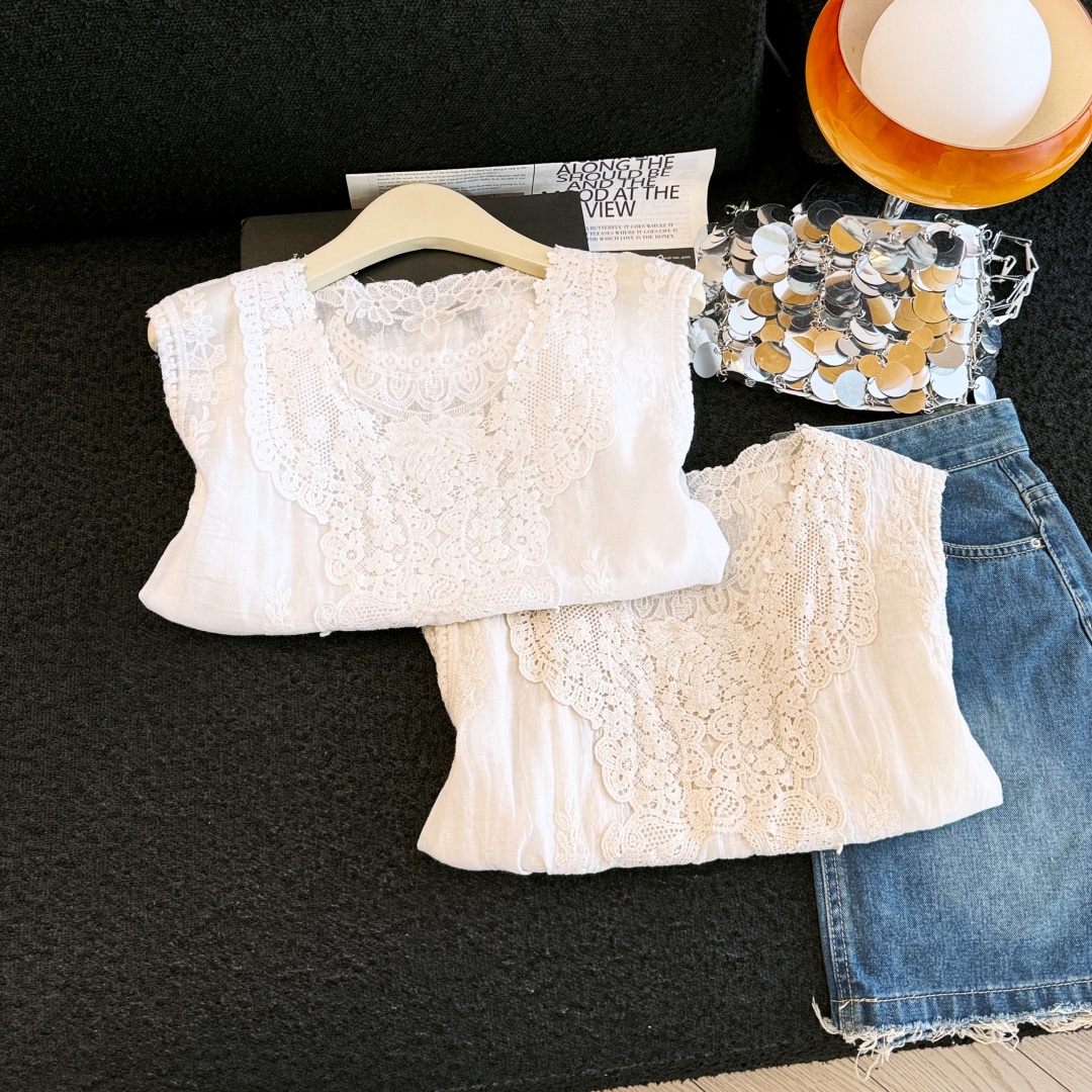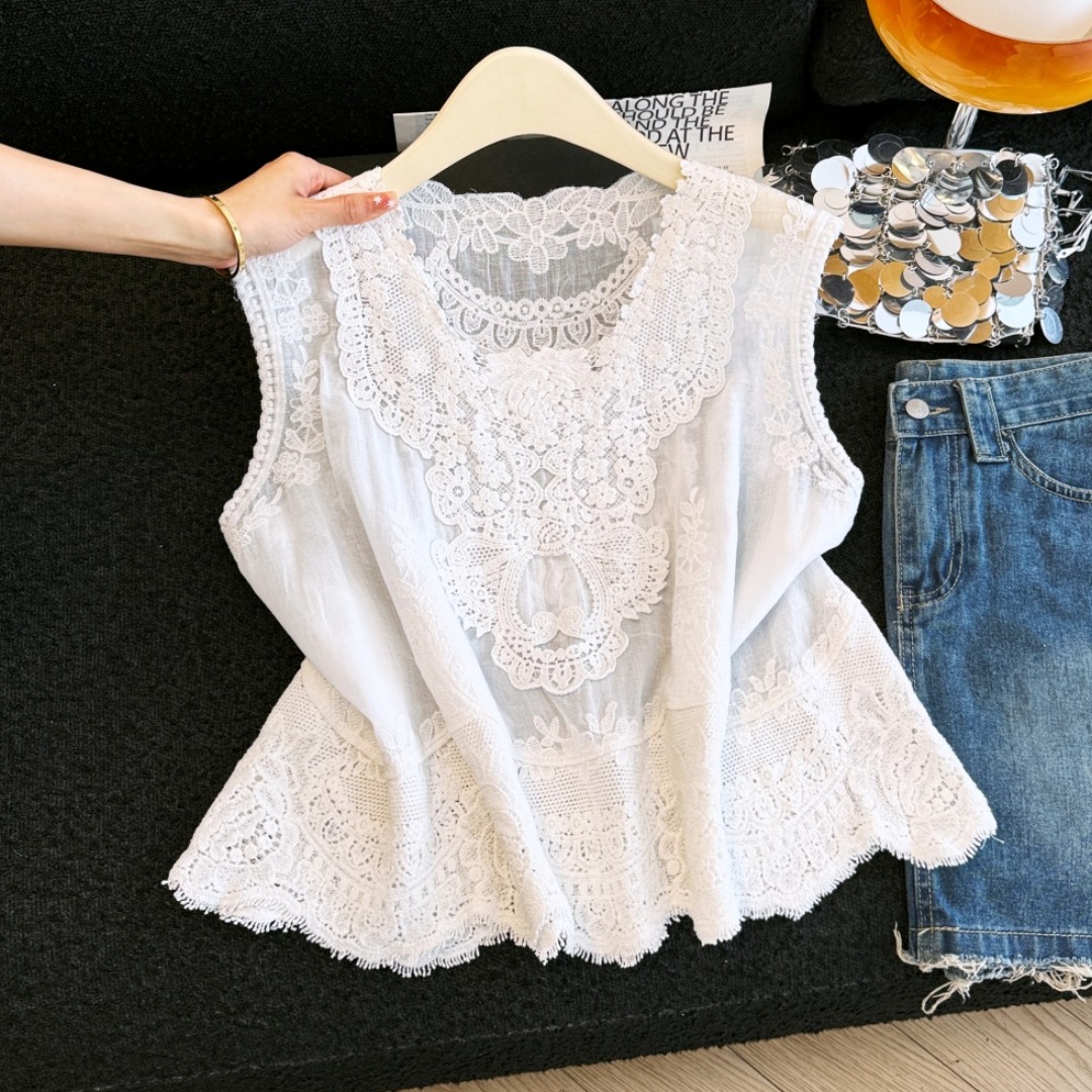 FA56888# 夏季新款韩版宽松显瘦百搭蕾丝马甲女无袖坎肩背心上衣