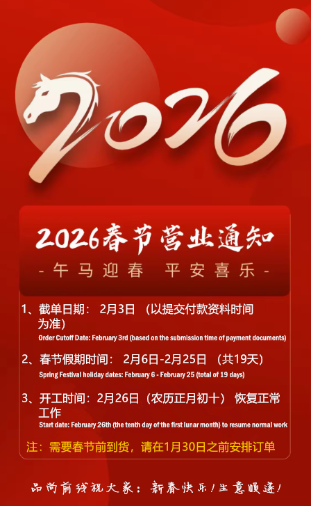 随着2026年新春佳节的即将到来,我司将春节假期安排与假期时间公布如下: