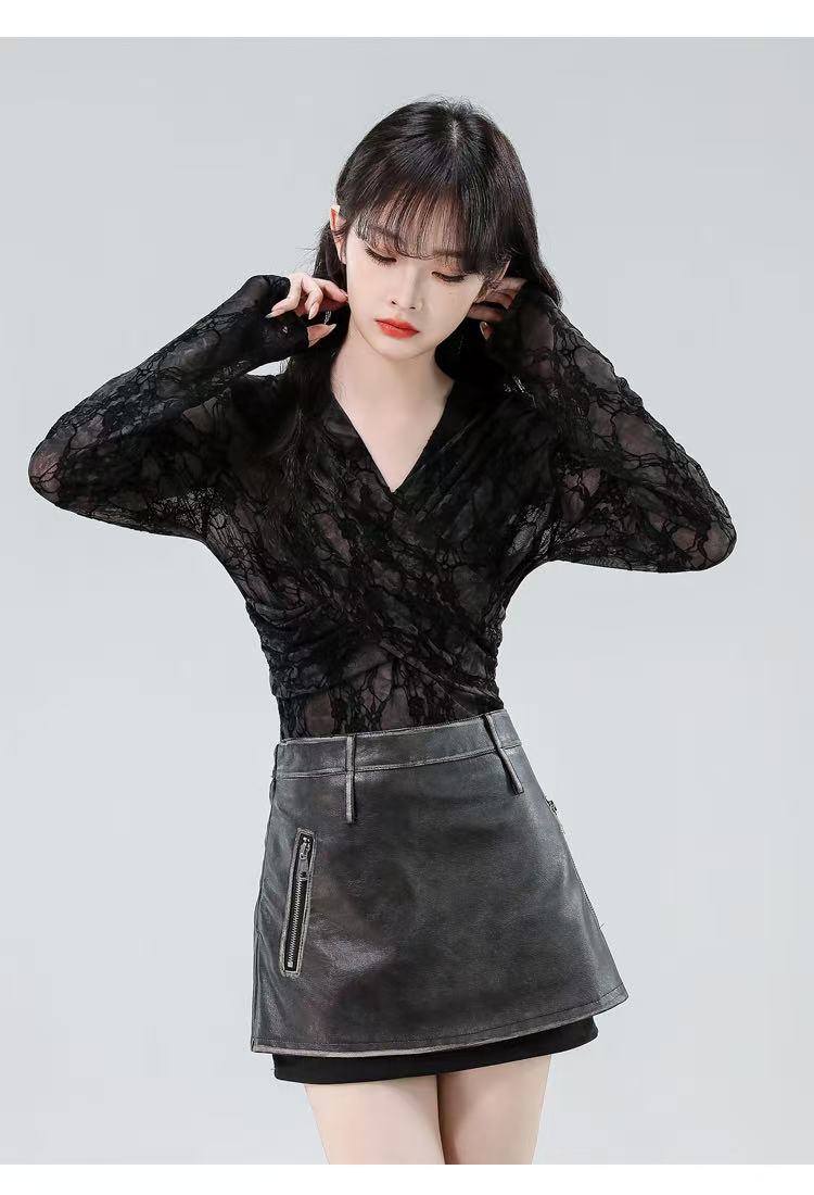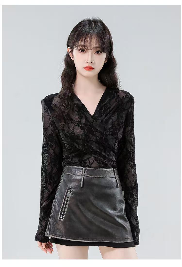 FA40215# 交叉设计气质长袖T恤衫女春秋新款时尚百搭打底衫 服裝批發女裝批發服飾貨源