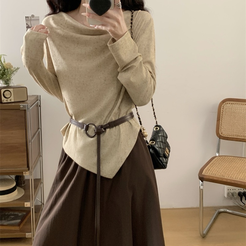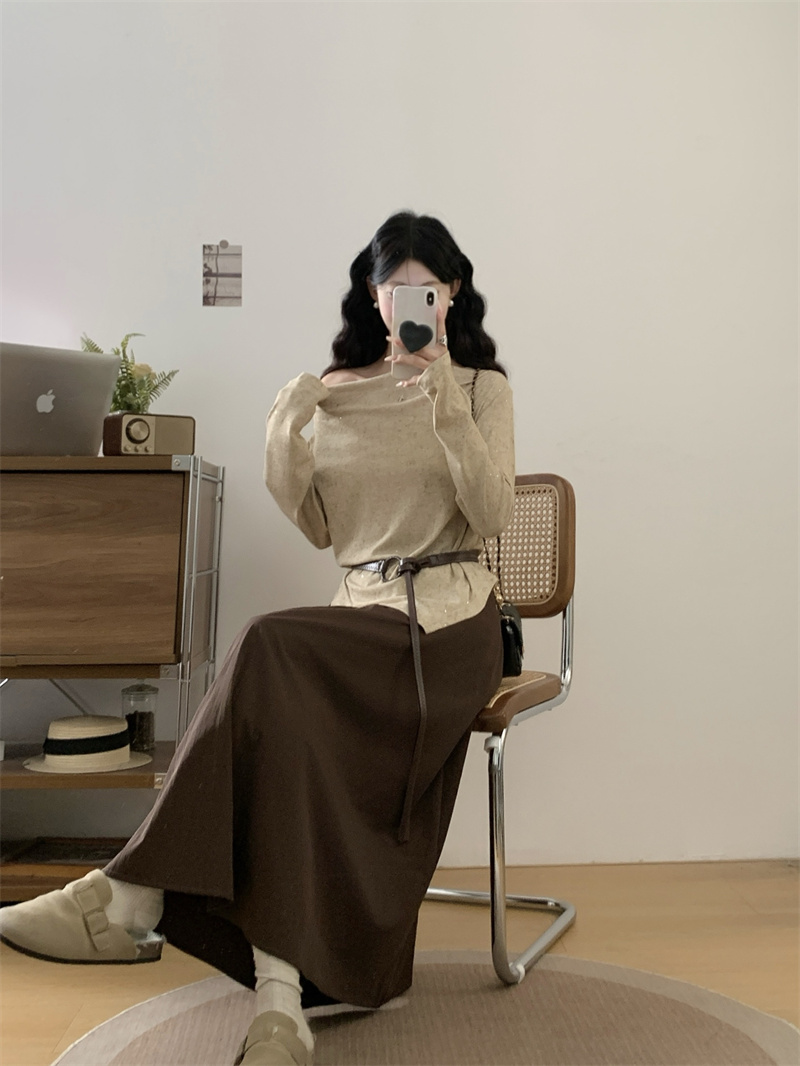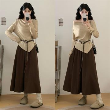 FA41534# 大码森谷小城禅意风显瘦荡领小衫+半身裙套装 服裝批發女裝批發服飾貨源