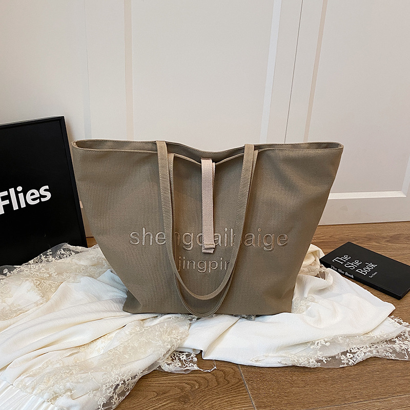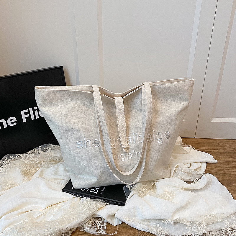 FA47447# 跨境帆布包包女大容量新款百搭简约休闲单肩大学生上课托特包 女包批发包包批发货源