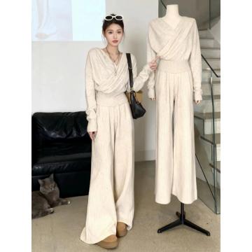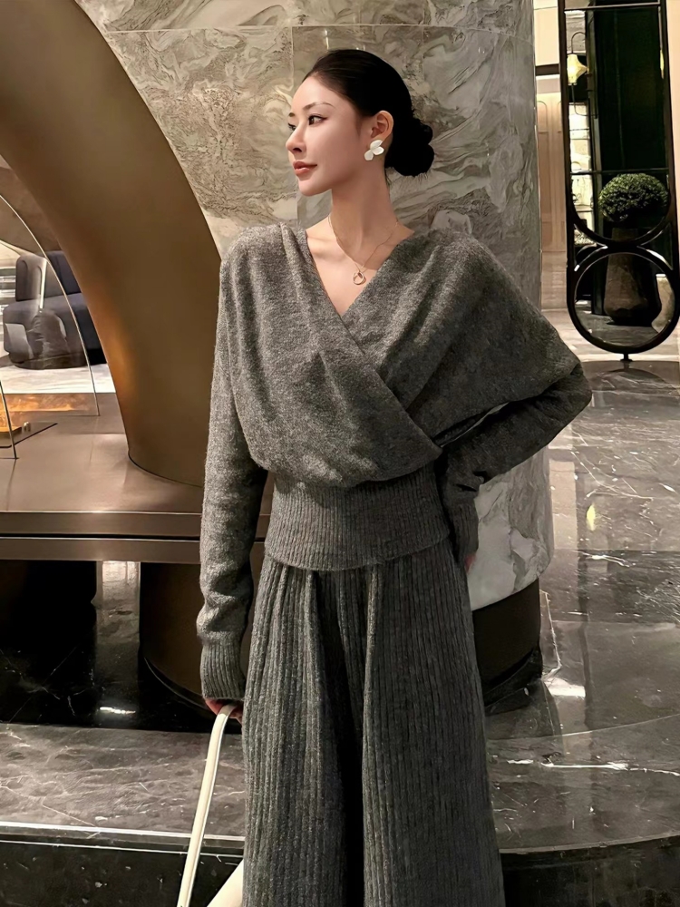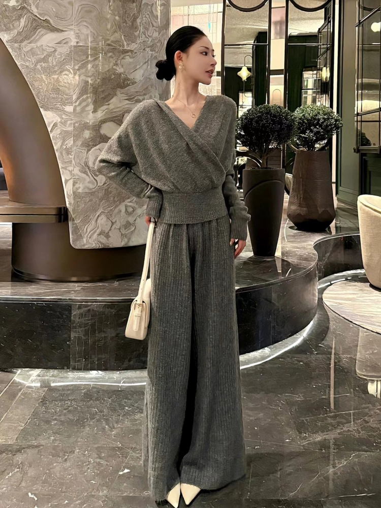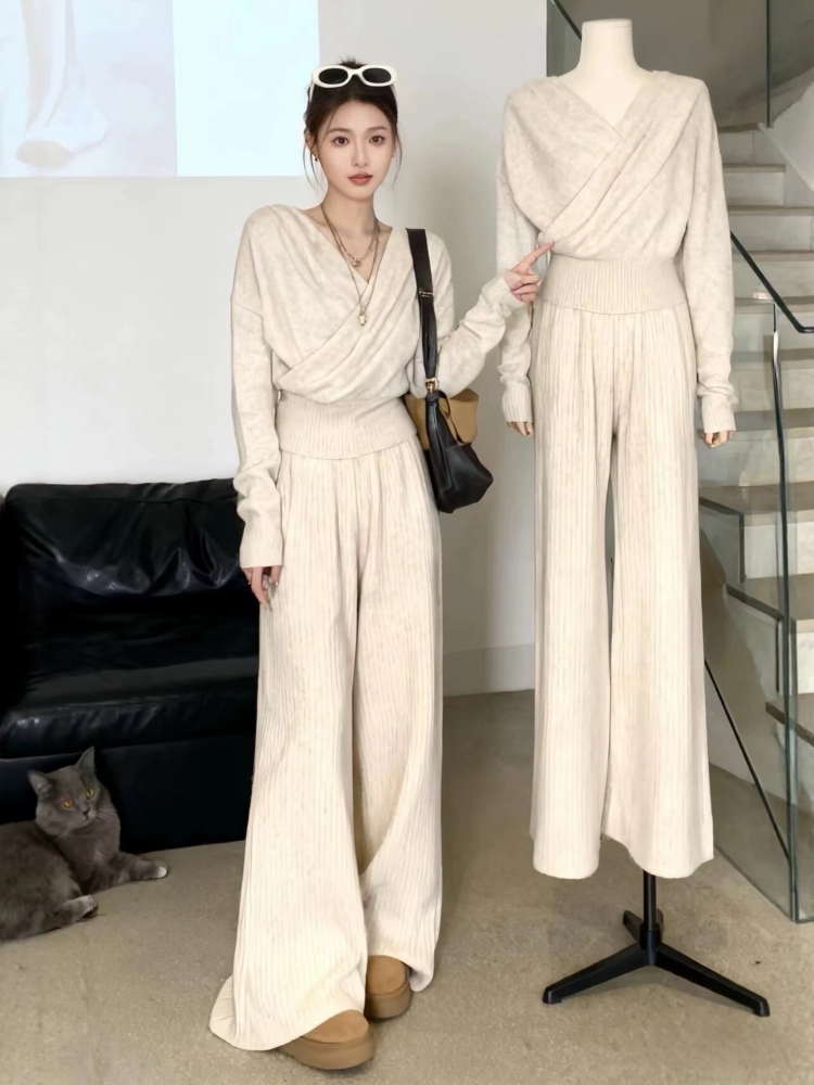 FA51211# 穿搭一整套冬季新款名媛气质气轻熟针织上衣阔腿裤两件套装女 服裝批發女裝批發服飾貨源