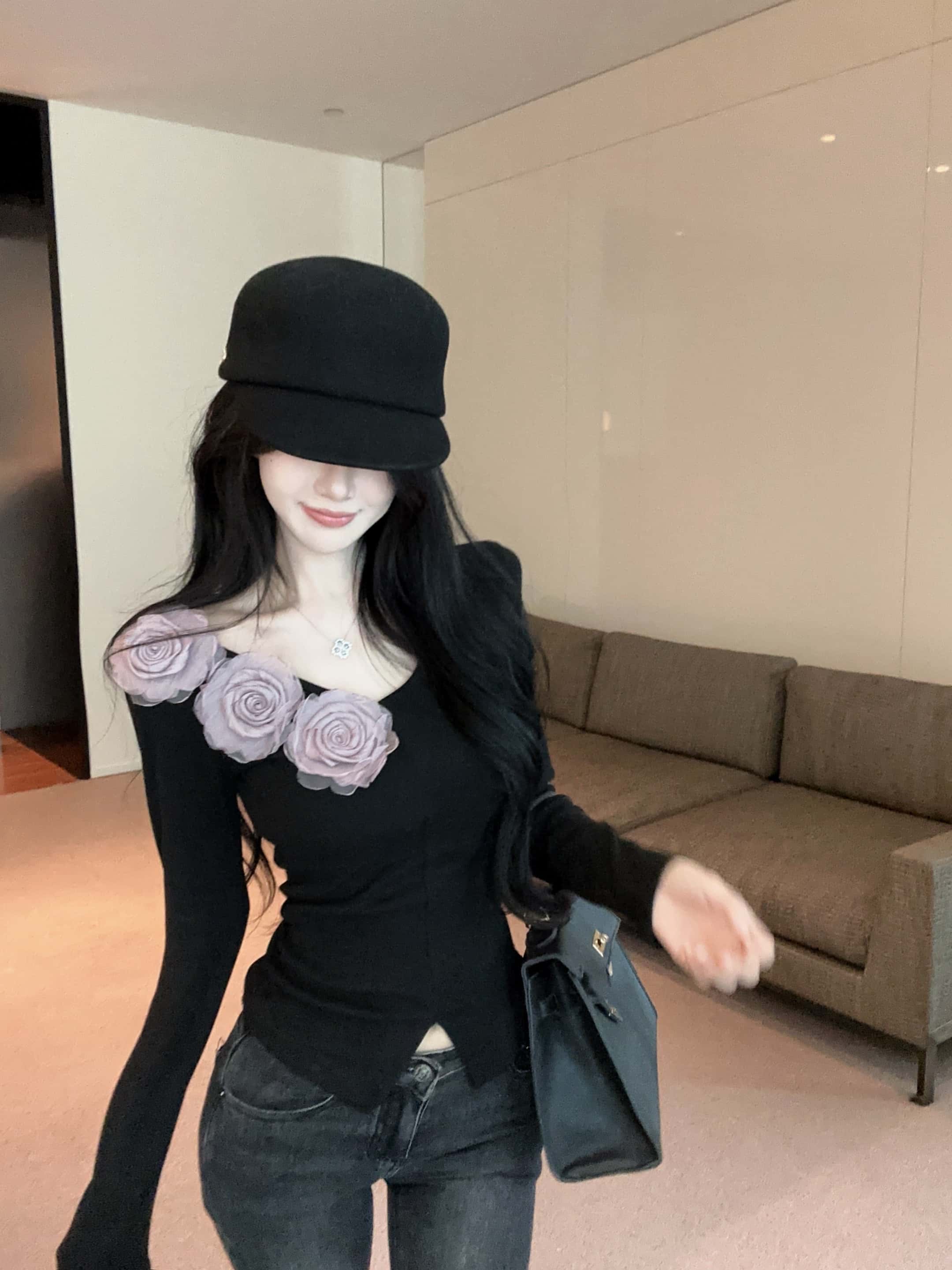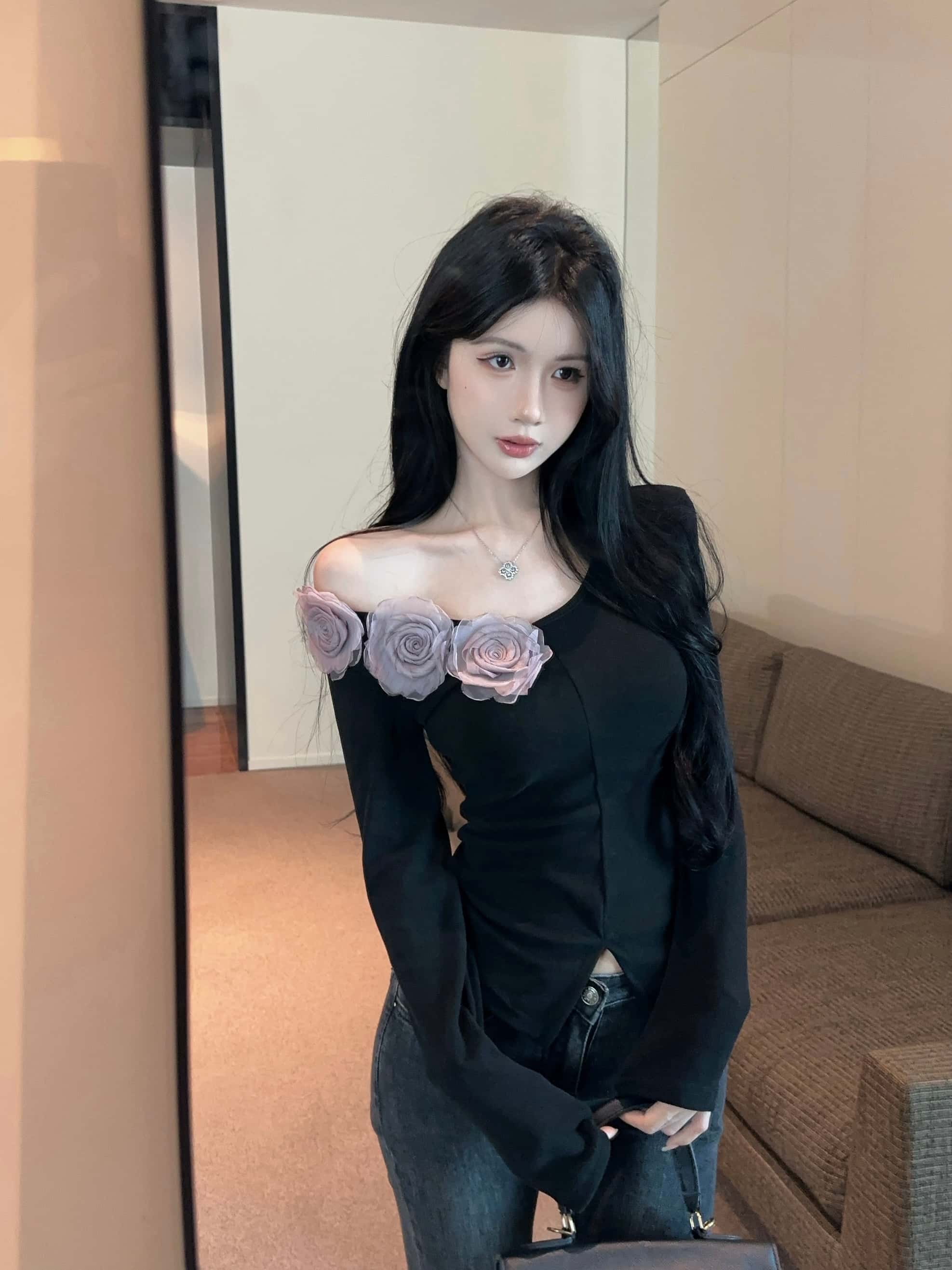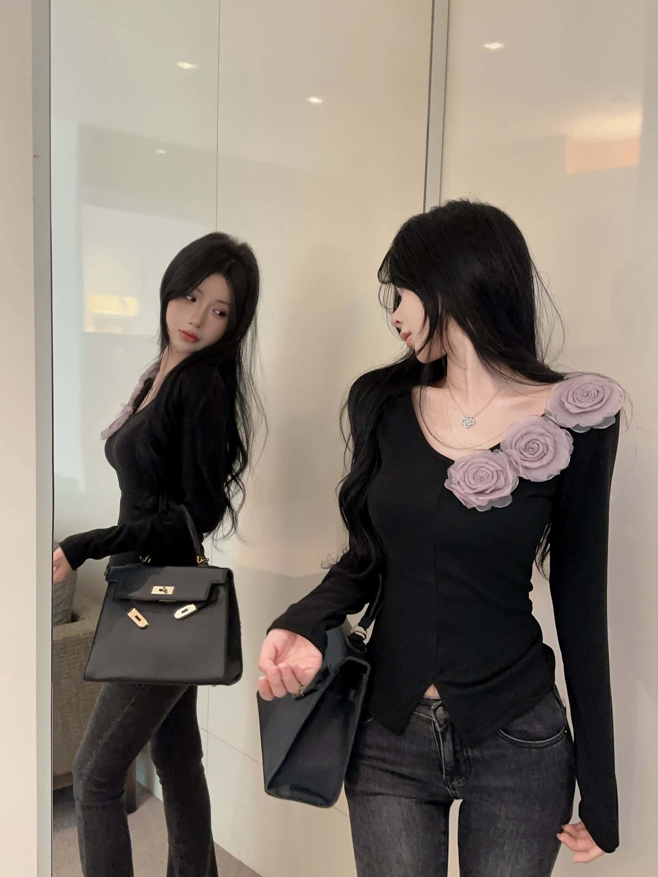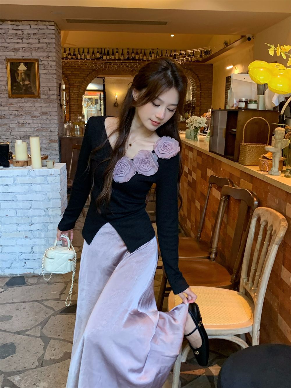 FA51311# 法式重工花朵v领修身上衣缎面半身裙两件套气秋季新款女 服裝批發女裝批發服飾貨源