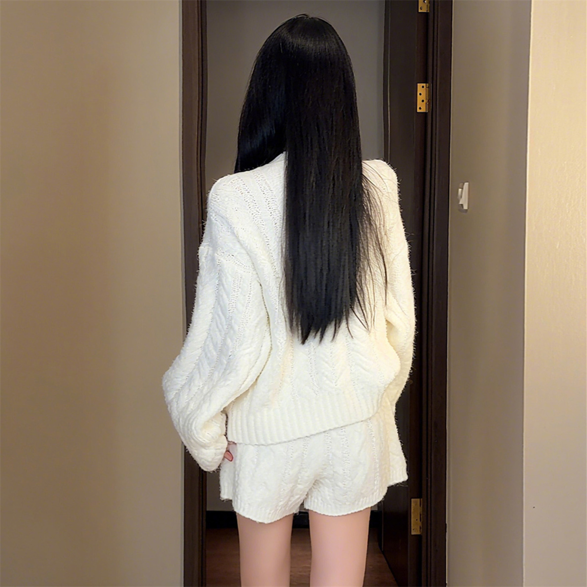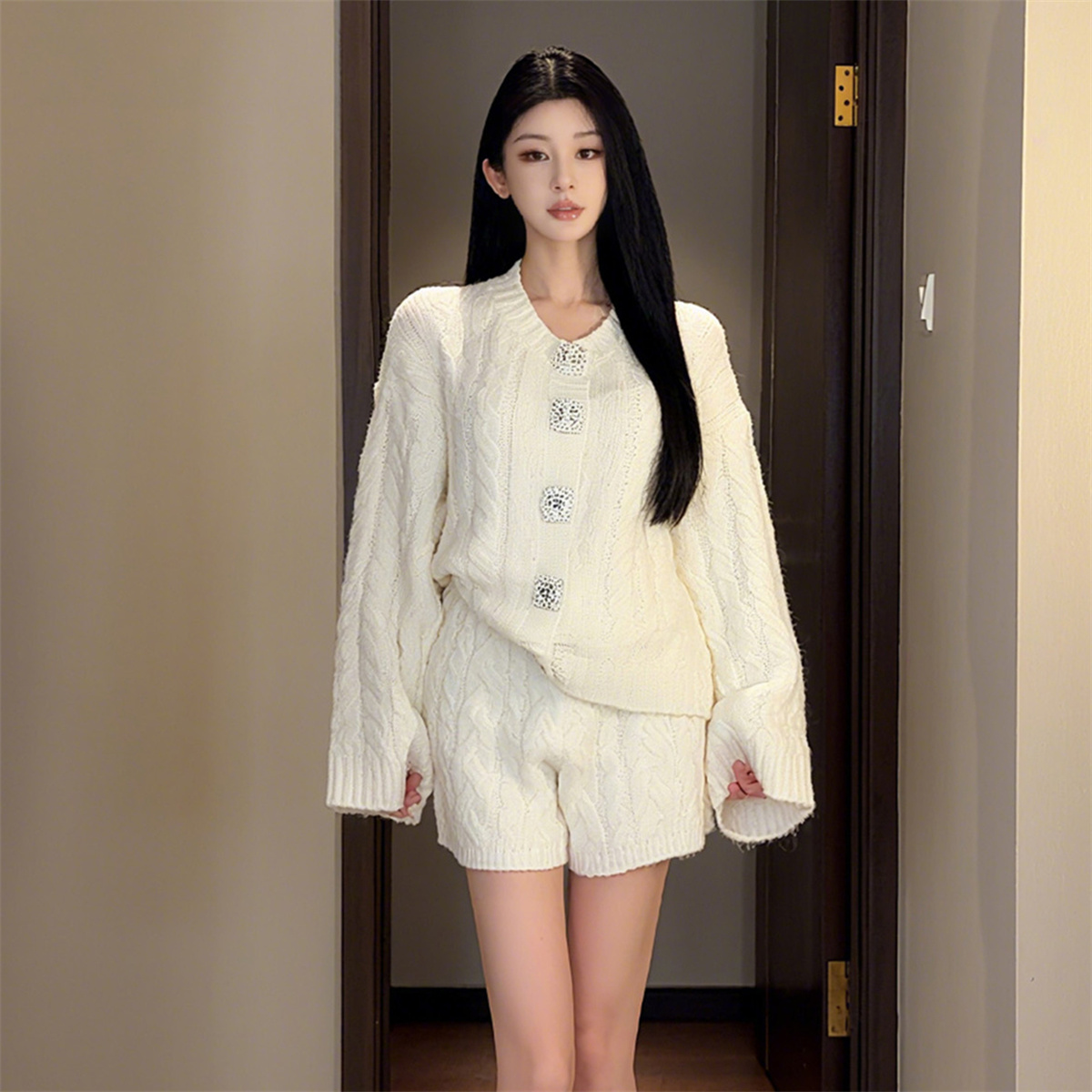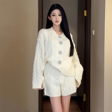 FA51466# 西柚慵懒休闲宽松套装麻花针织开衫直筒短裤 服裝批發女裝批發服飾貨源