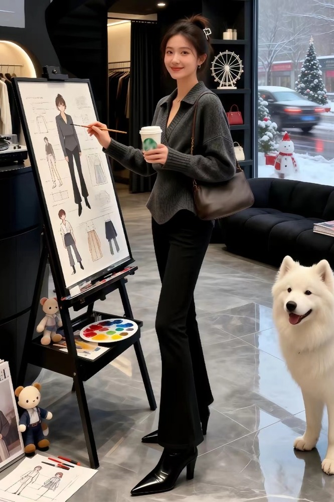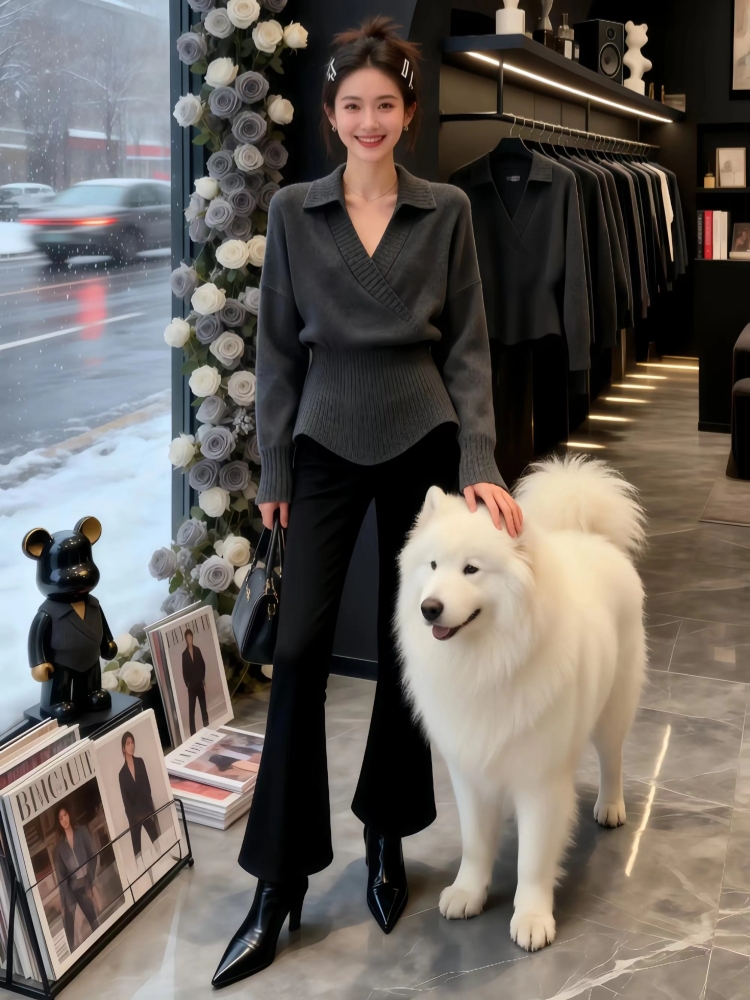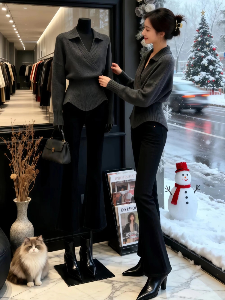 FA51631# 气质穿搭一整套冬季新款高级感复古针织衫毛衣微喇裤两件套装 服裝批發女裝批發服飾貨源