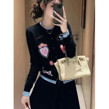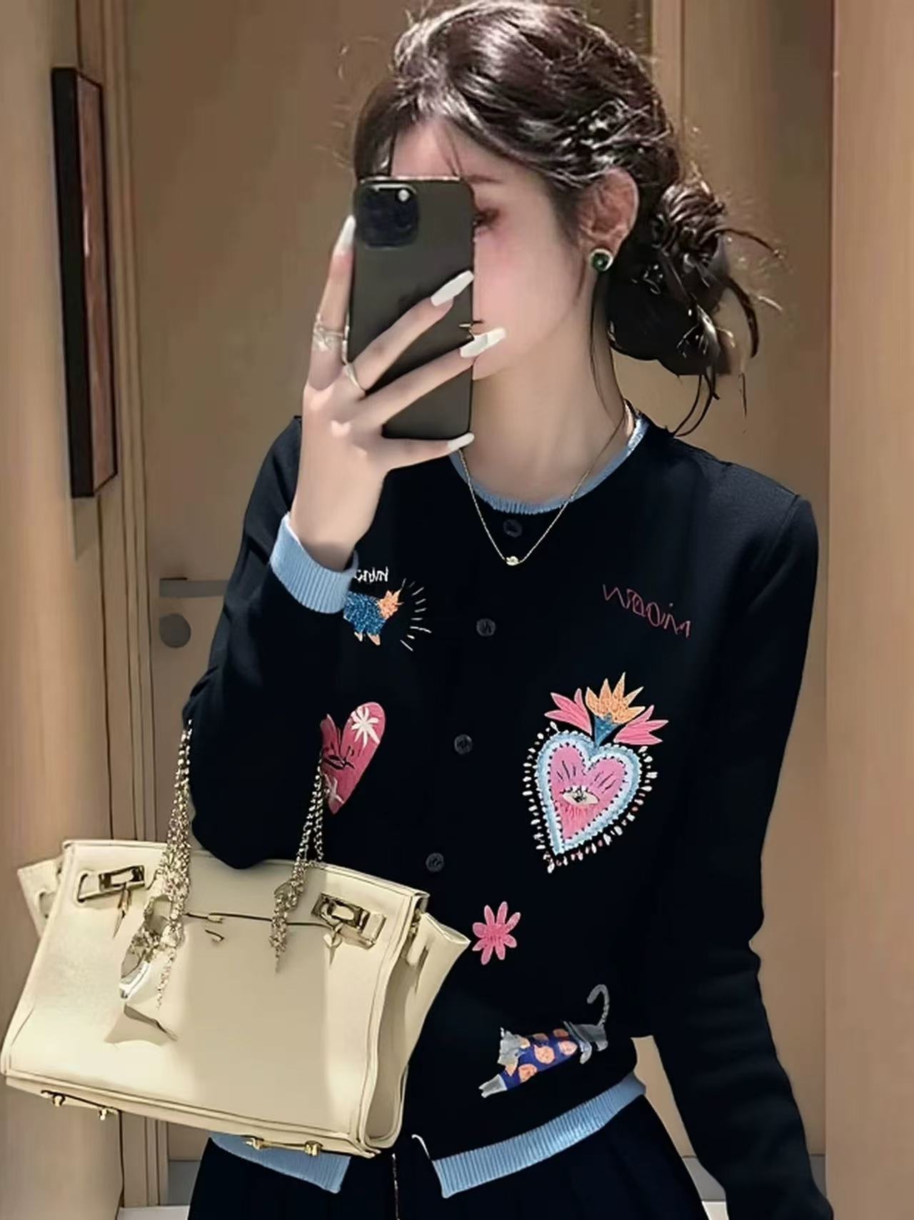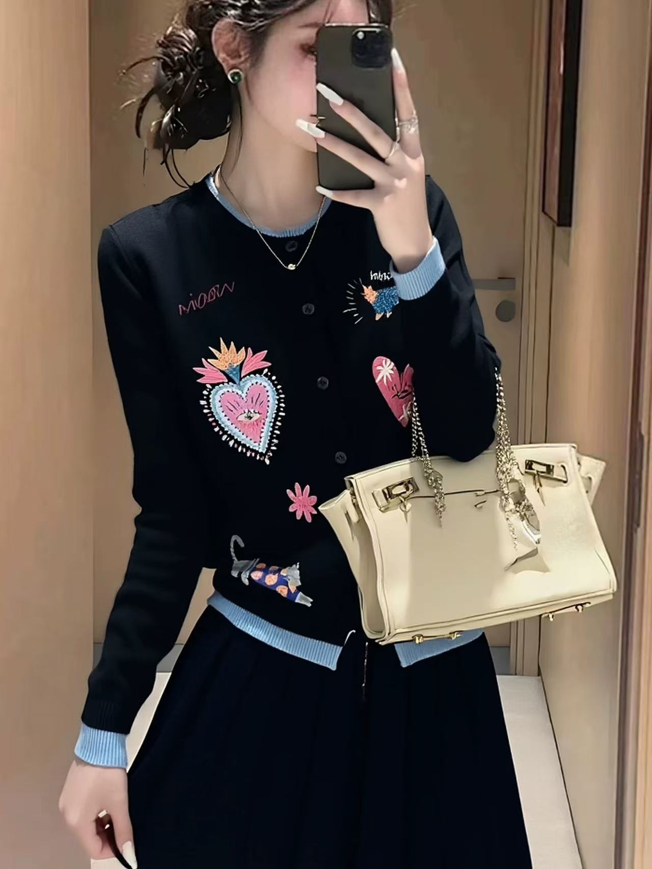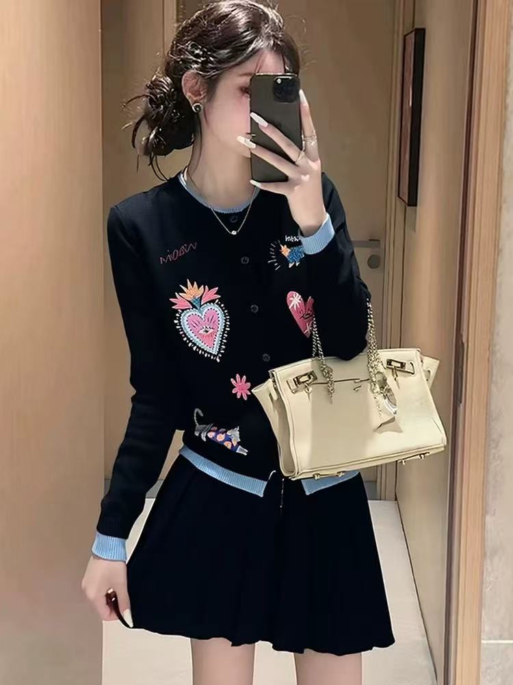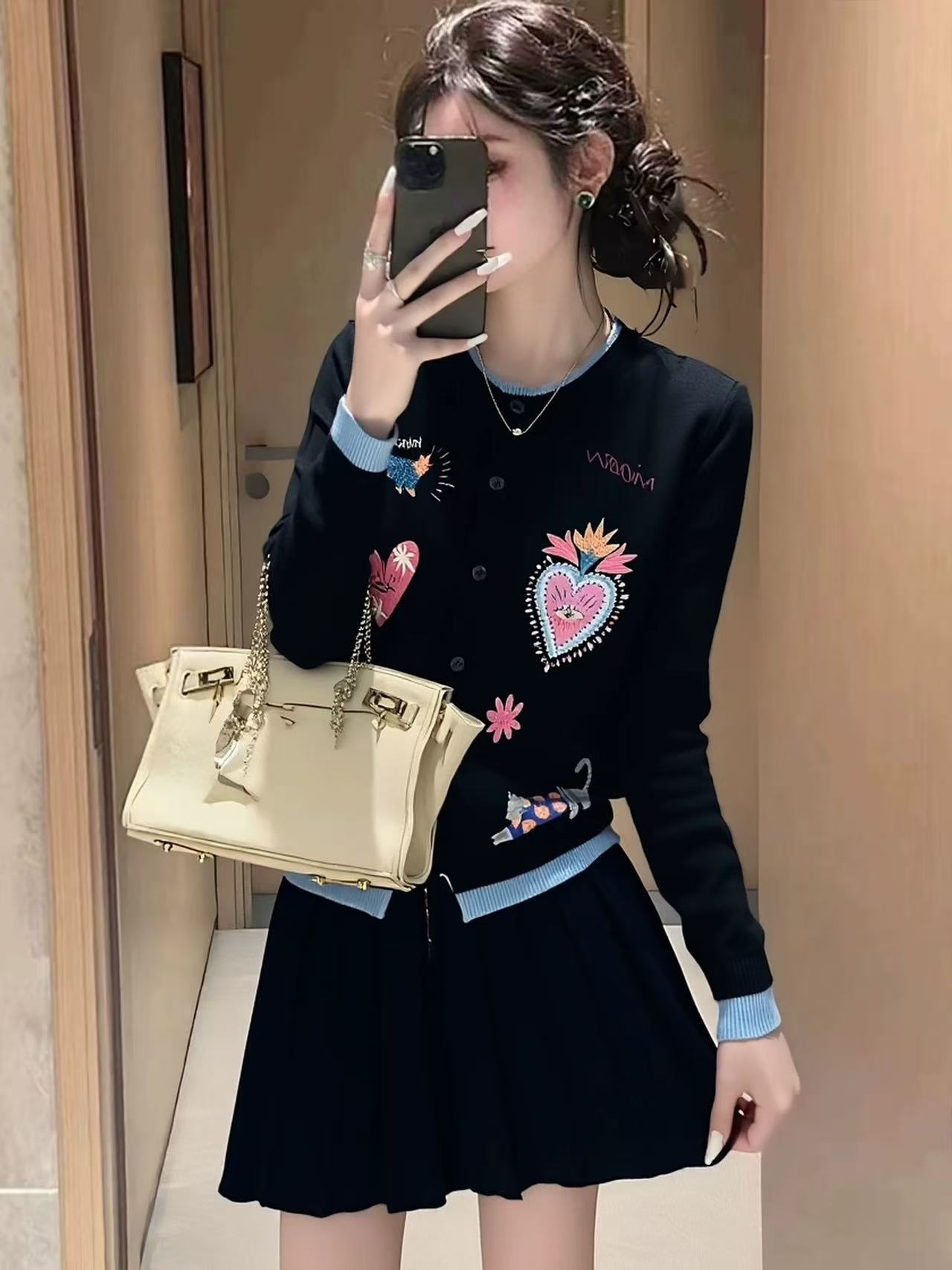 FA51816# 藏蓝色毛衣套装女新款秋冬穿搭一整套提花上衣 服裝批發女裝批發服飾貨源