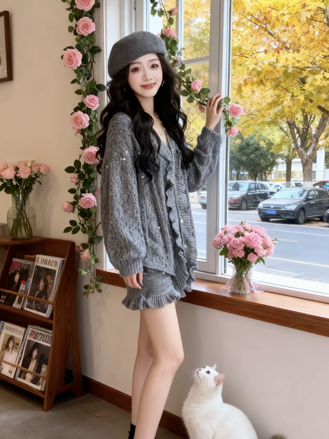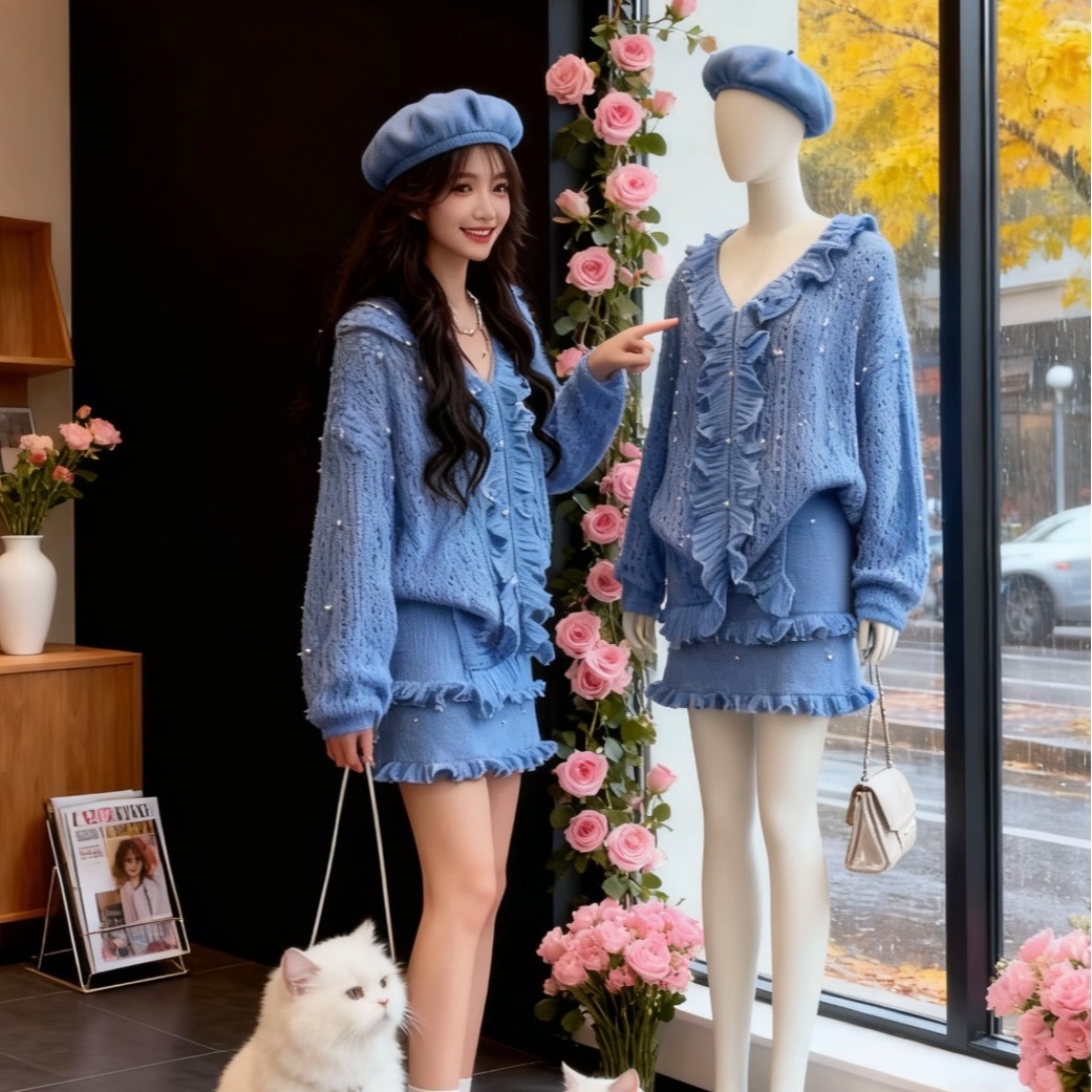 FA51827# 温柔系洋气套装女宽松减龄上衣巨好看的两件套早秋新款独特半身裙 服裝批發女裝批發服飾貨源