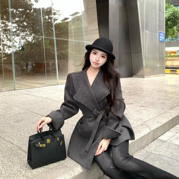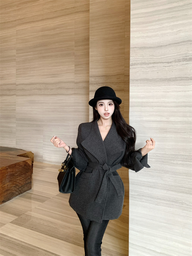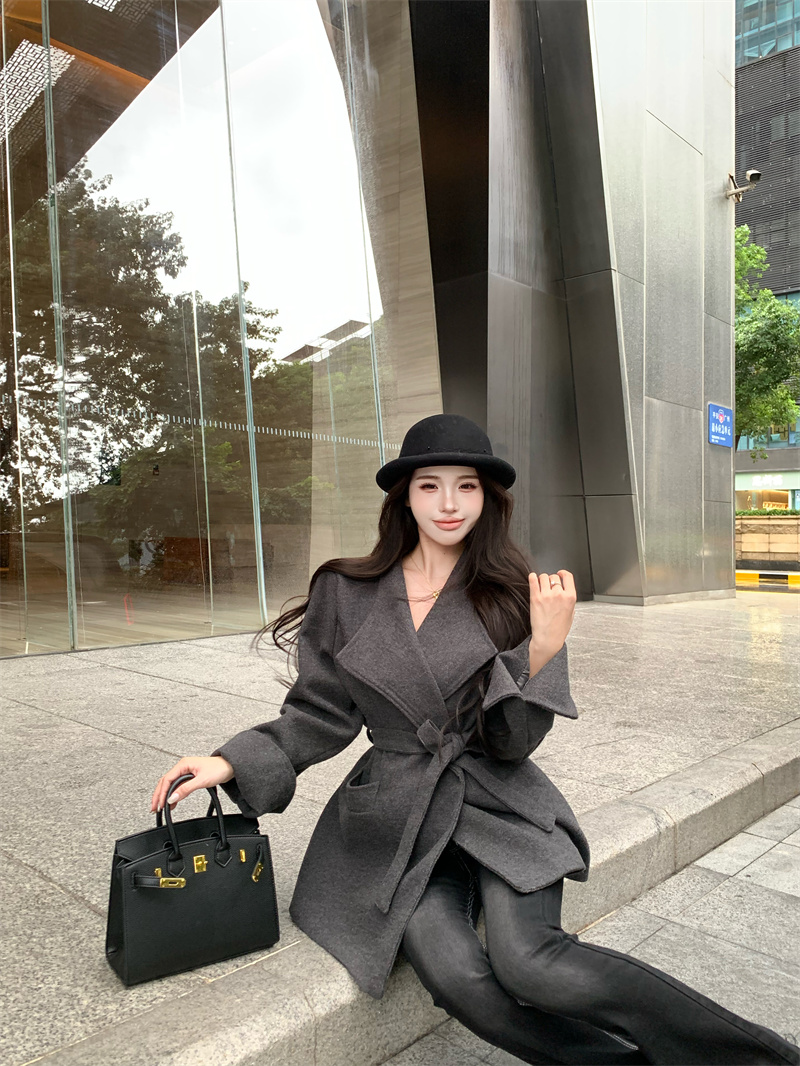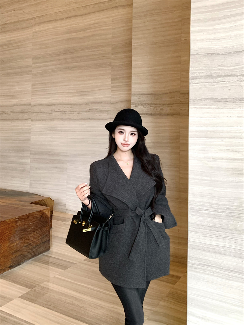 FA52042# 法式名媛温柔风加厚毛呢翻领系腰带收腰显瘦大衣外套女 服裝批發女裝批發服飾貨源