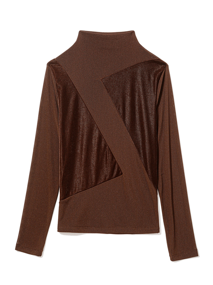 FA52172# 新款时尚百搭丝绒拼接纯色网纱长袖高领打底衫女 服裝批發女裝批發服飾貨源