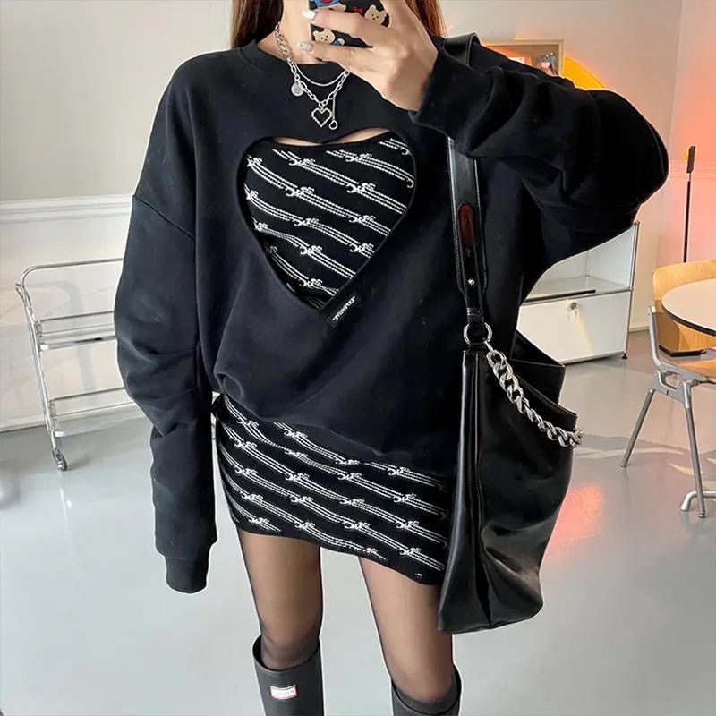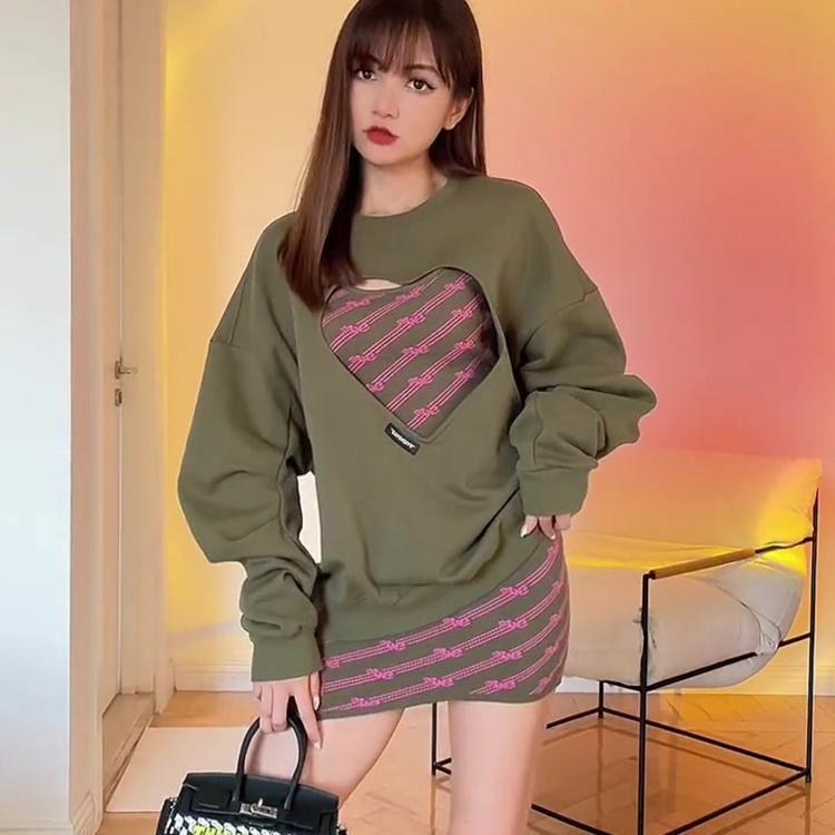 Home > 卫衣 > FA52390# 大码胖mm300斤爱心卫衣女镂空设计感小众春秋上衣宽松遮肚吊带裙 服裝批發女裝批發服飾貨源