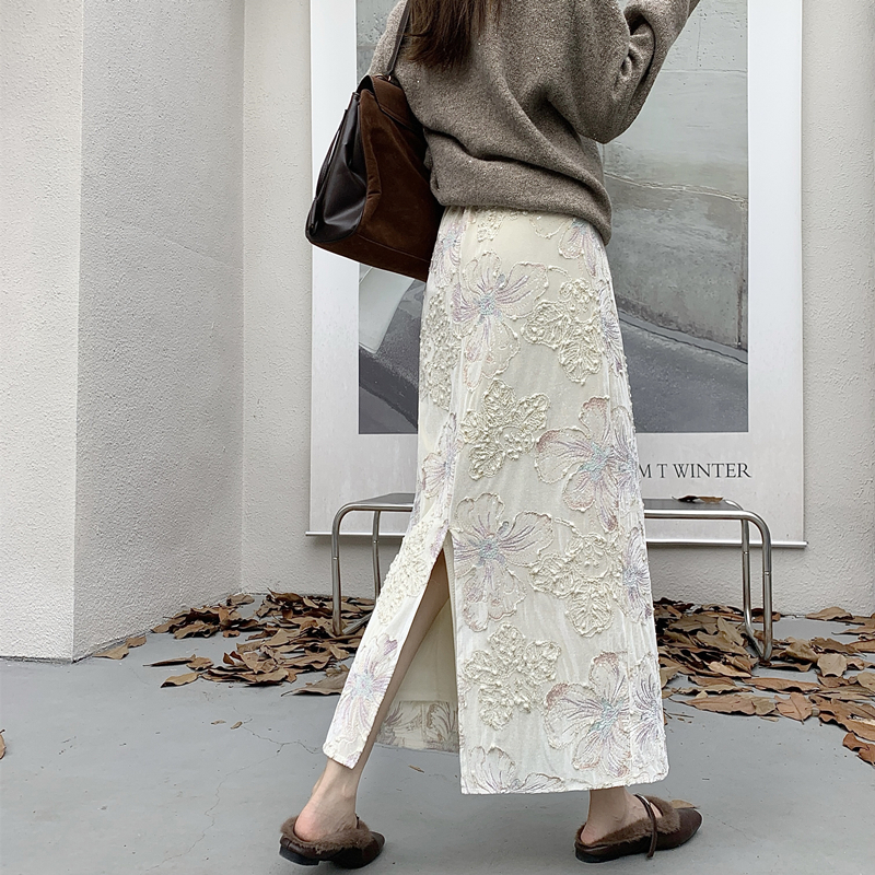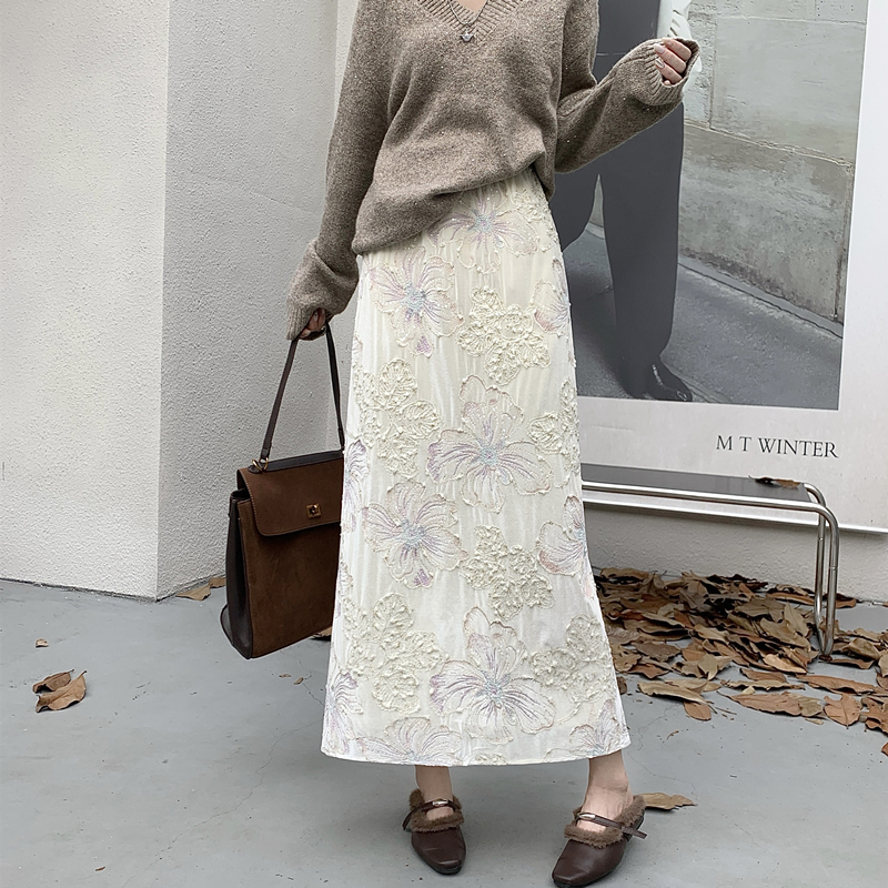 FA52555# 新款秋冬摩登重工刺绣亮片丝绒半身裙女高腰直筒中长裙 服裝批發女裝批發服飾貨源