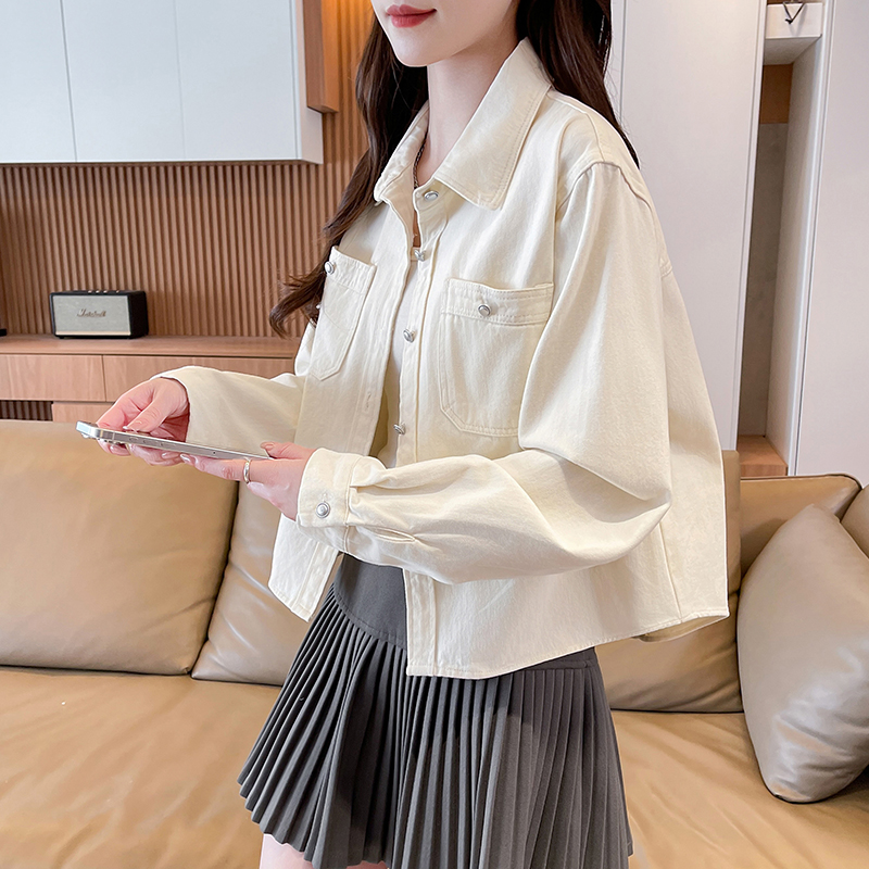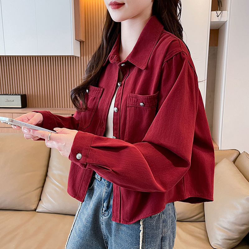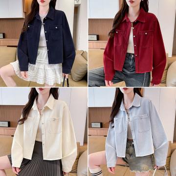 FA52573# 韩系全棉磨毛加厚衬衫女秋季休闲宽松慵懒上衣短款工装外套 服裝批發女裝批發服飾貨源