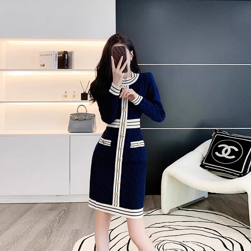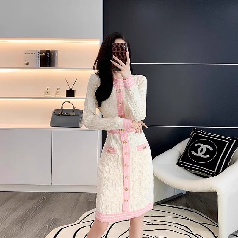 FA52612# 小香风秋冬圆领长袖针织连衣裙修身包臀过膝内搭麻花毛衣打底裙子 服裝批發女裝批發服飾貨源