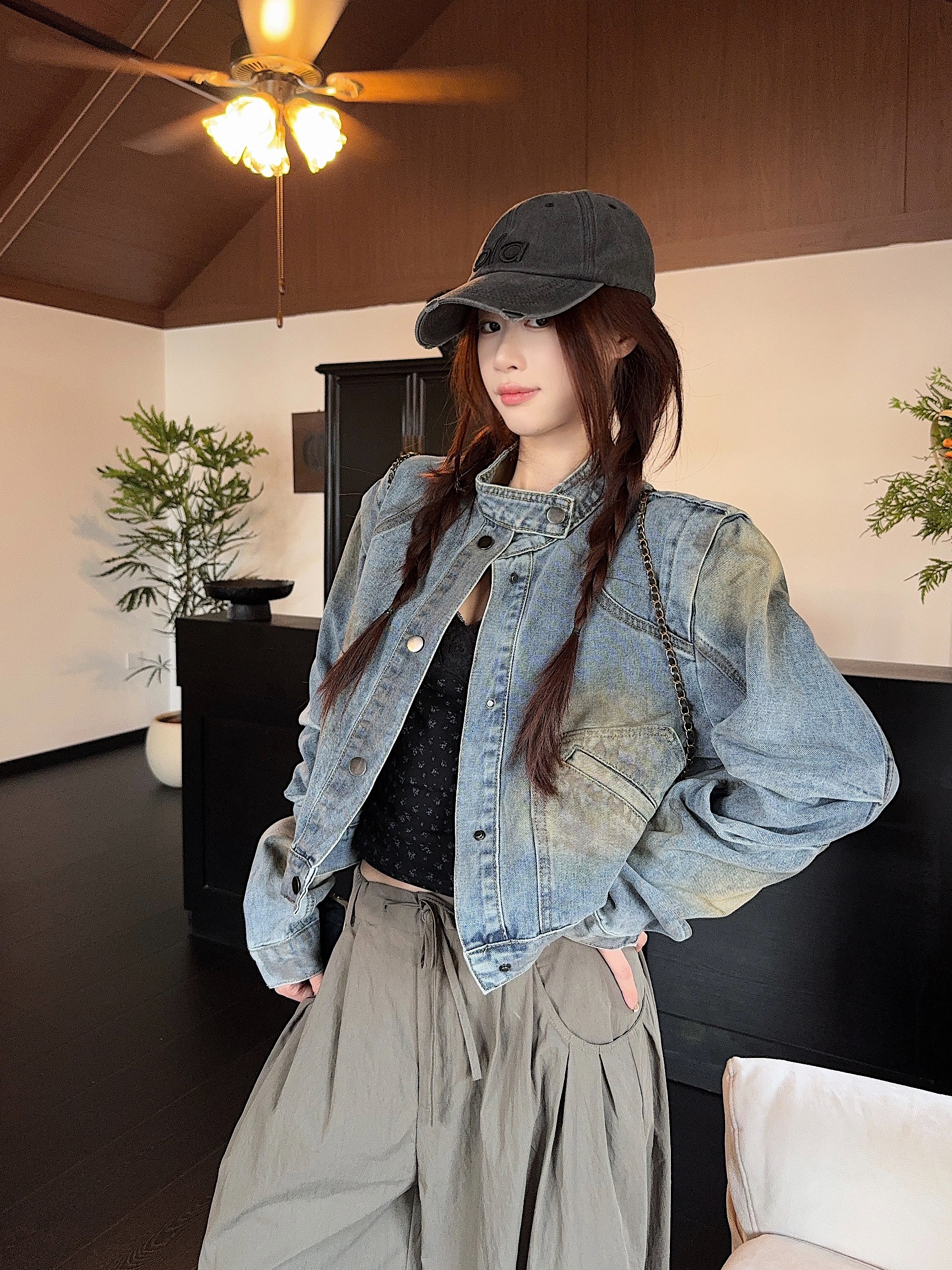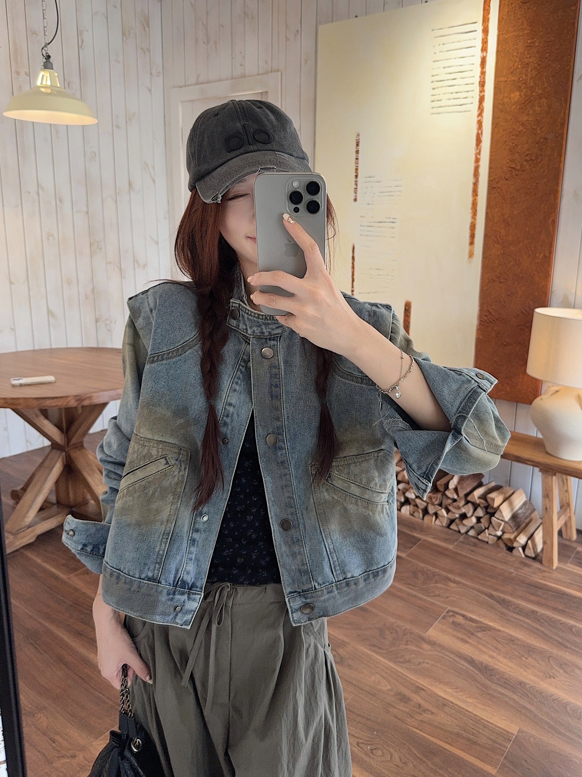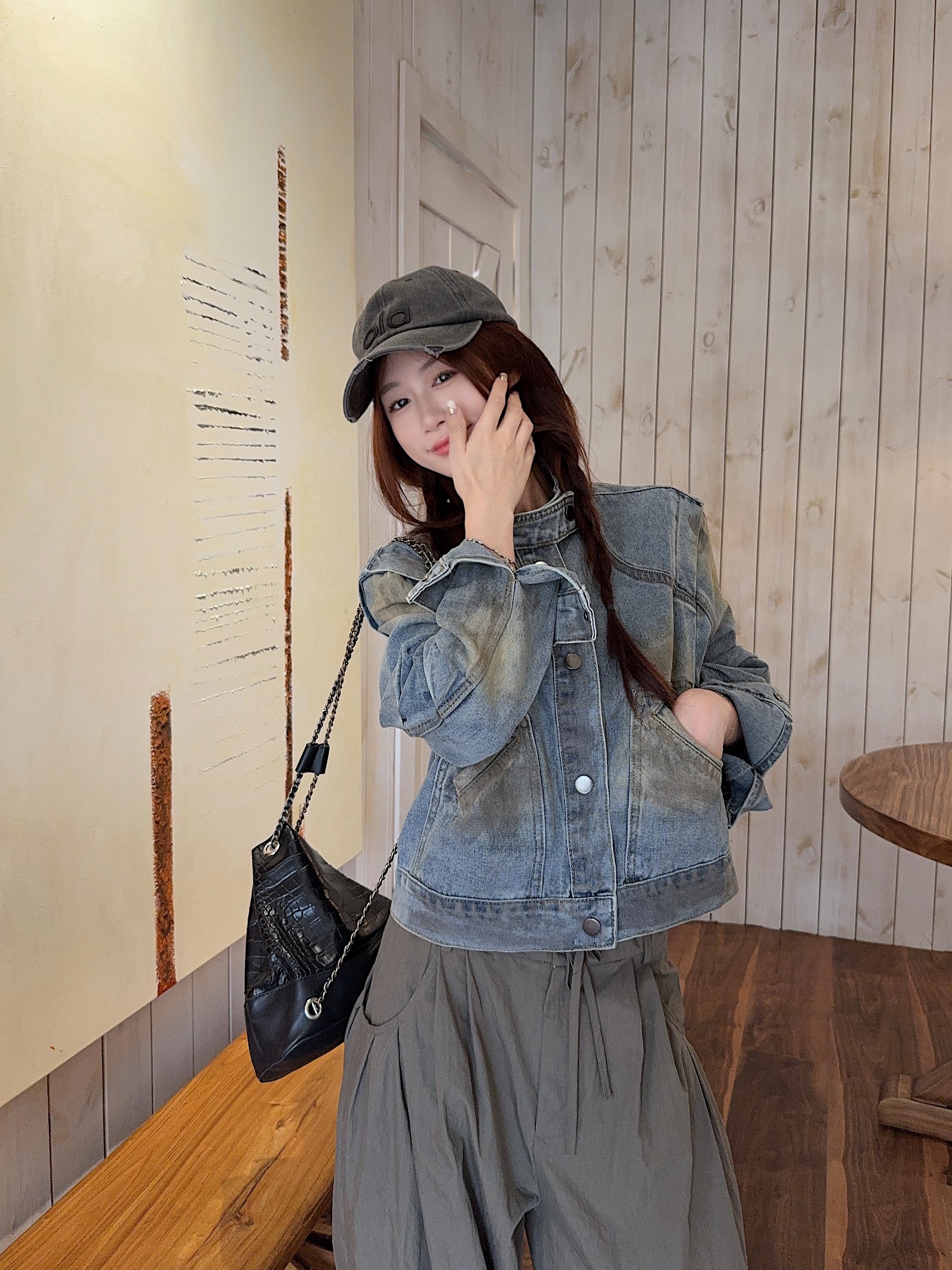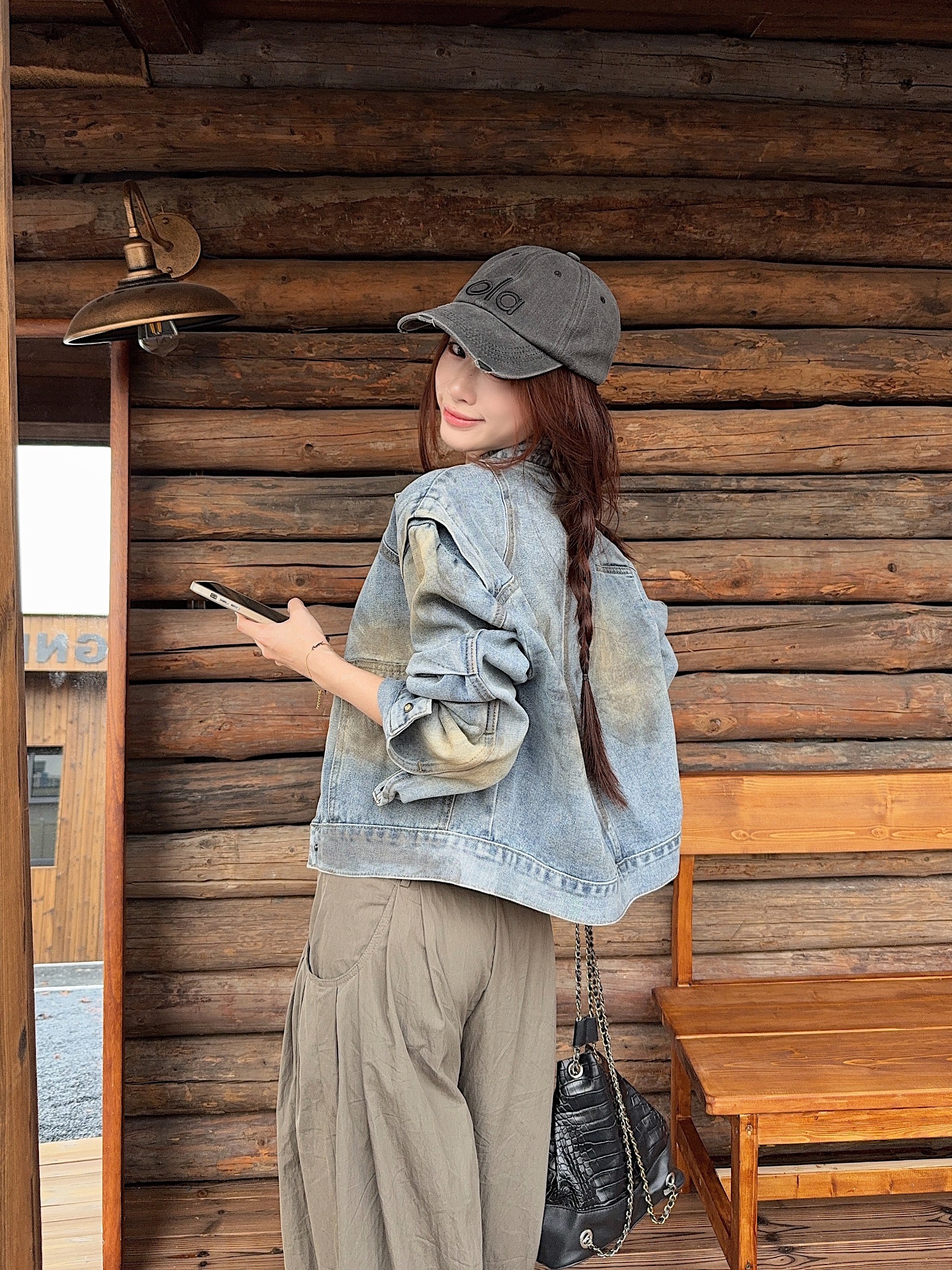 FA52729# 早秋新款小众设计美式复古做旧风涂鸦漆宽松牛仔外套 服裝批發女裝批發服飾貨源