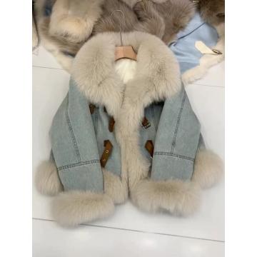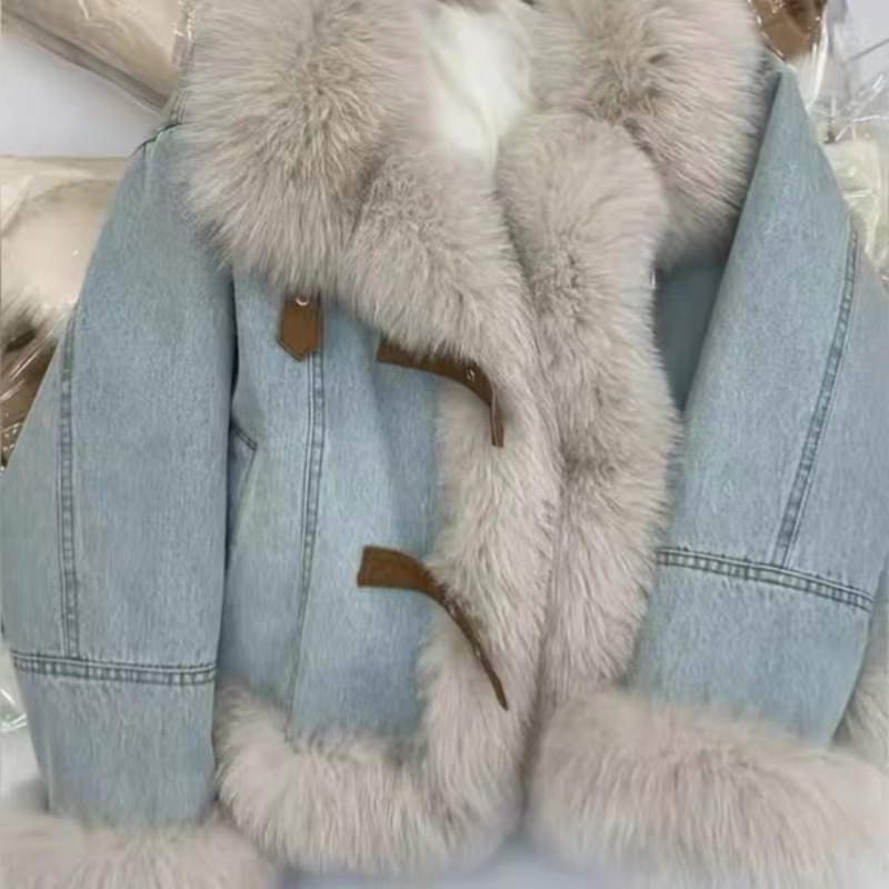 蓝色白毛领夹棉