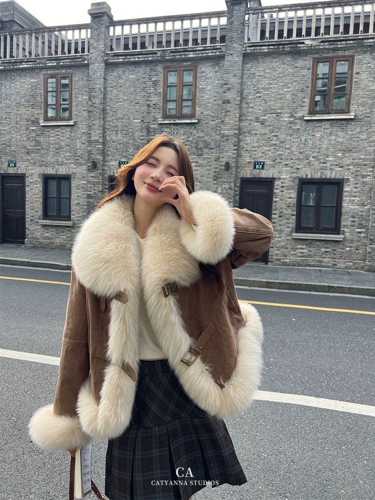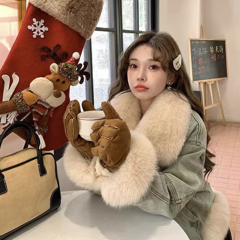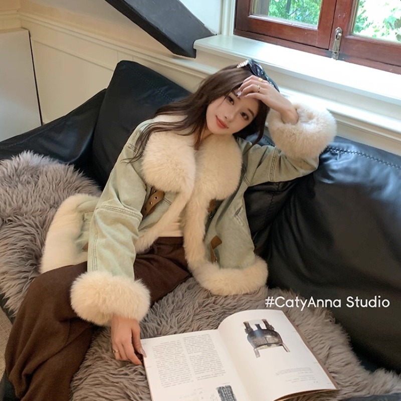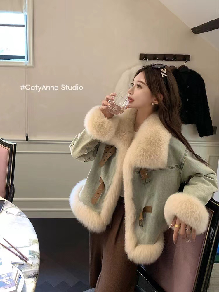 FA52738# 安娜家沫雪海盐炸街牛仔派克服女短款羽绒狐狸毛皮草外套 服裝批發女裝批發服飾貨源