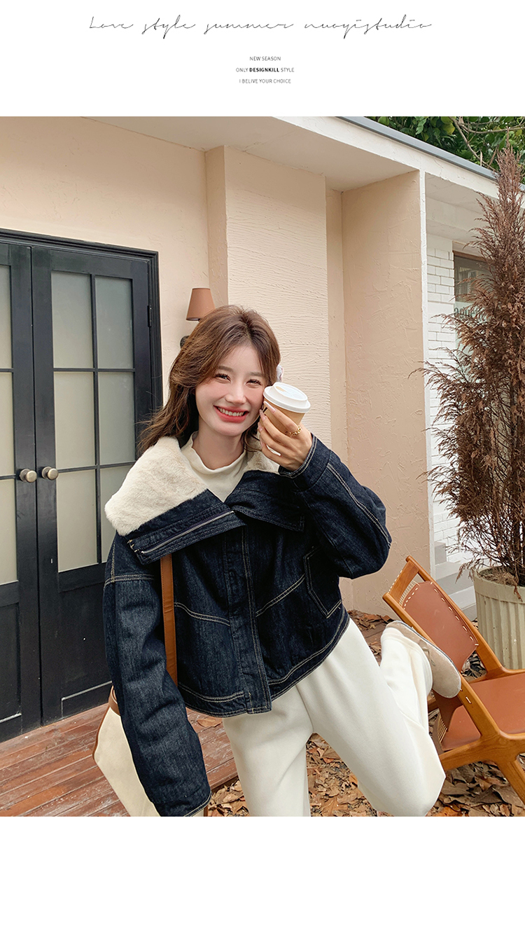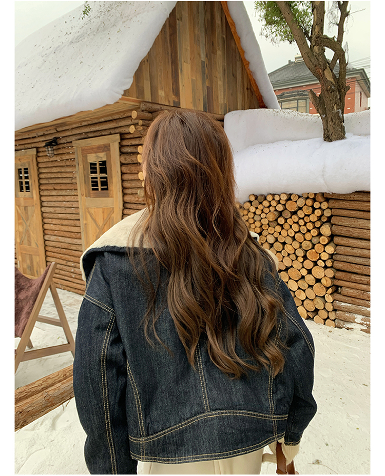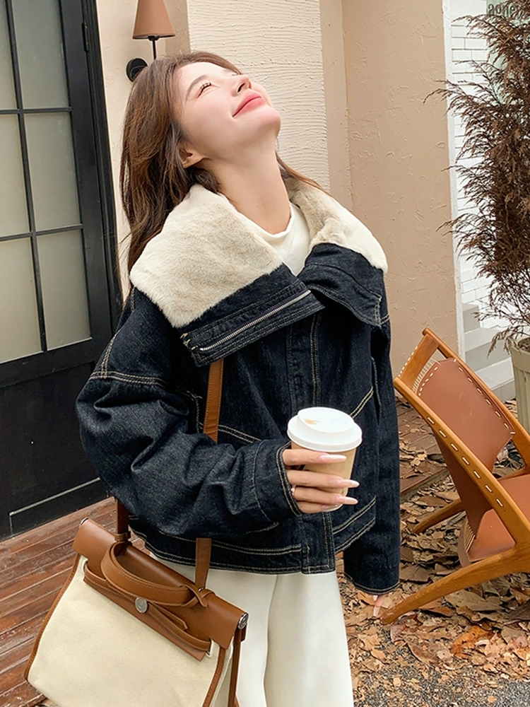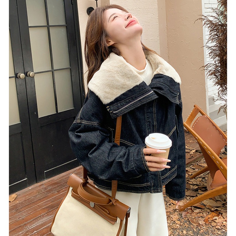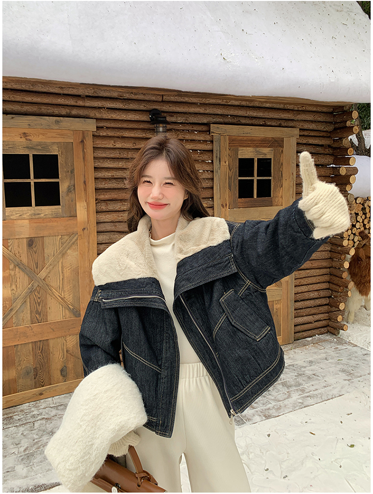 FA52753# 羊羔毛大毛领牛仔外套女冬季新款高级感超好看短款加厚派克服 服裝批發女裝批發服飾貨源