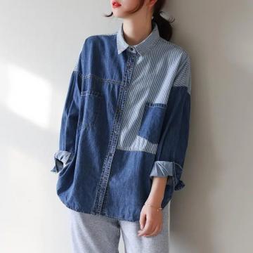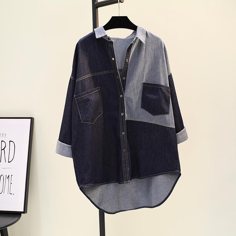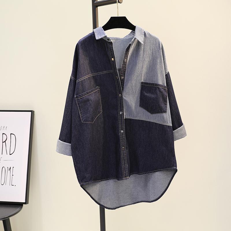FA52788# 多巴胺春秋款牛仔衬衫女外穿洋气韩版宽松拼接衬衣牛仔衣上衣外套 服裝批發女裝批發服飾貨源