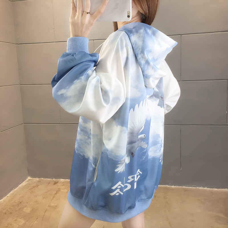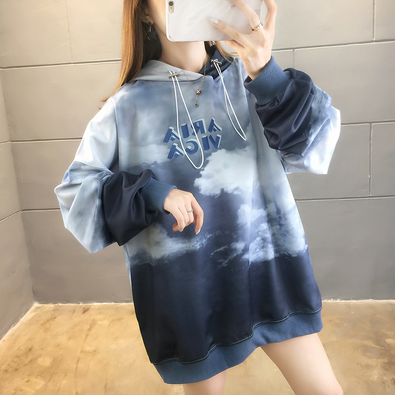 FA52913# 春季潮流设计感印花连帽薄款长袖卫衣女 服裝批發女裝批發服飾貨源