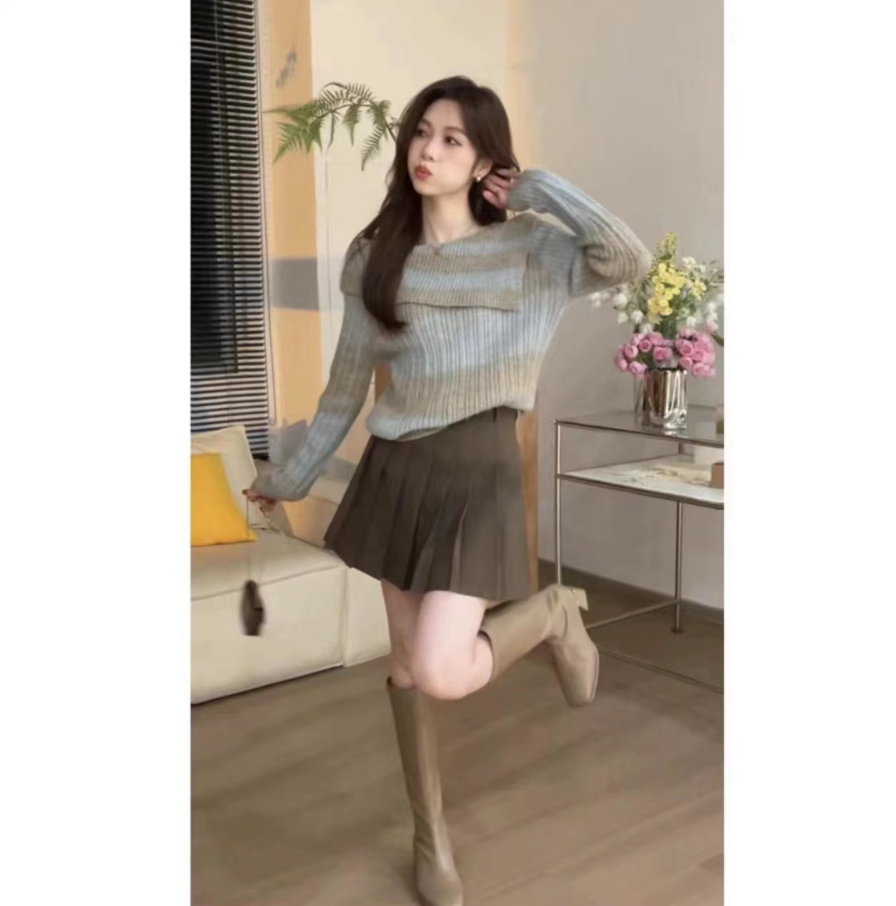 FA53150# 渐变一字领露肩毛衣女秋冬设计感软糯慵懒显瘦长袖针织衫外穿上衣 服裝批發女裝批發服飾貨源